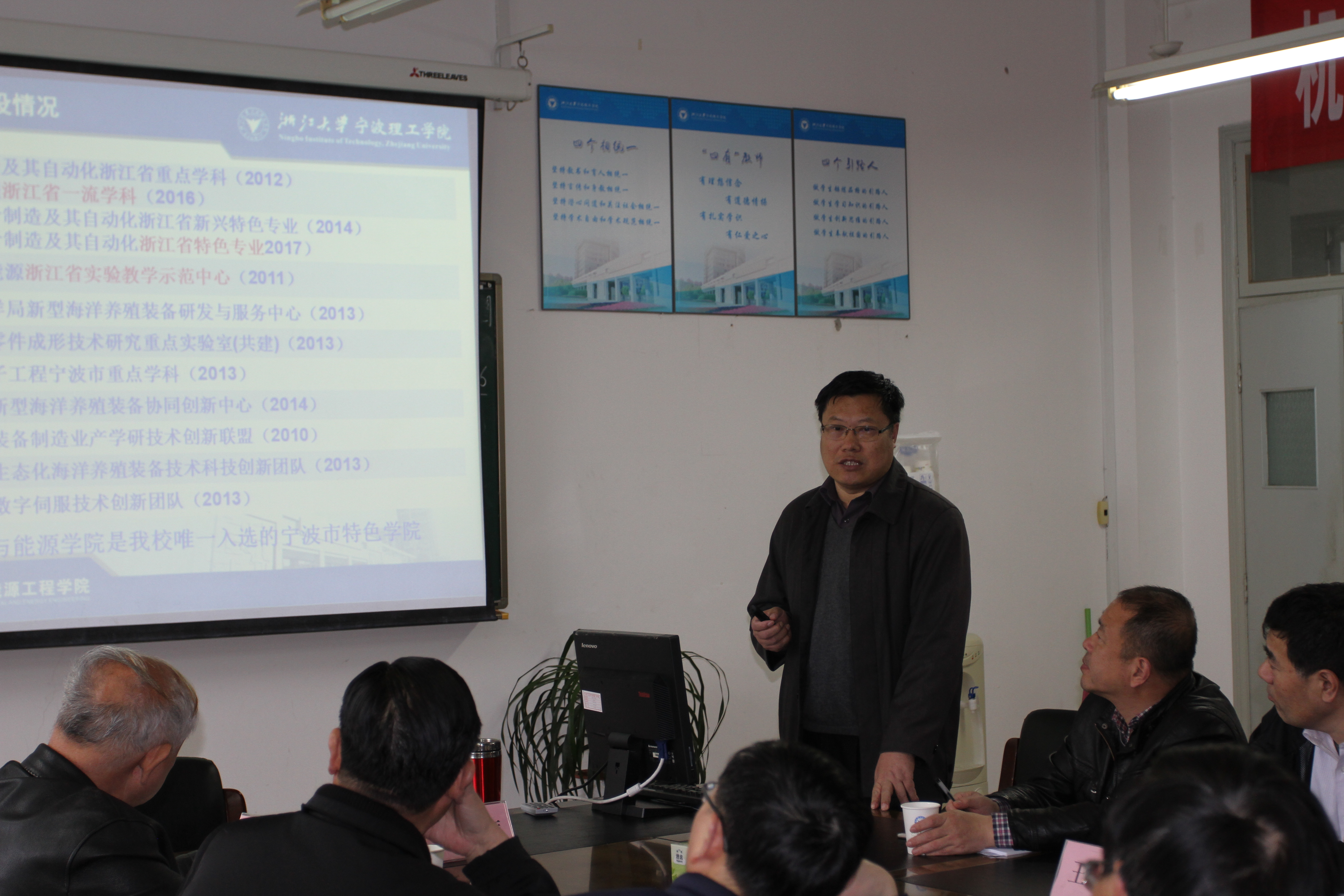 2017年3月30日下午14:00,浙江大学宁波理工学院机电与能源工程学院在NA408-2会议室召开第三届专业建设指导委员会成立大会暨2017-2020级本科专业培养方案审议会议。学院教学指导委员会主任叶春华,副主任施岳定,学院院长陈光明,党总支书记吴春,教务处处长杨祥龙,副院长高德、王义强、陈俊华、各研究所所长、副所长及教学管理人员参加会议,会议由叶春华主任主持。
