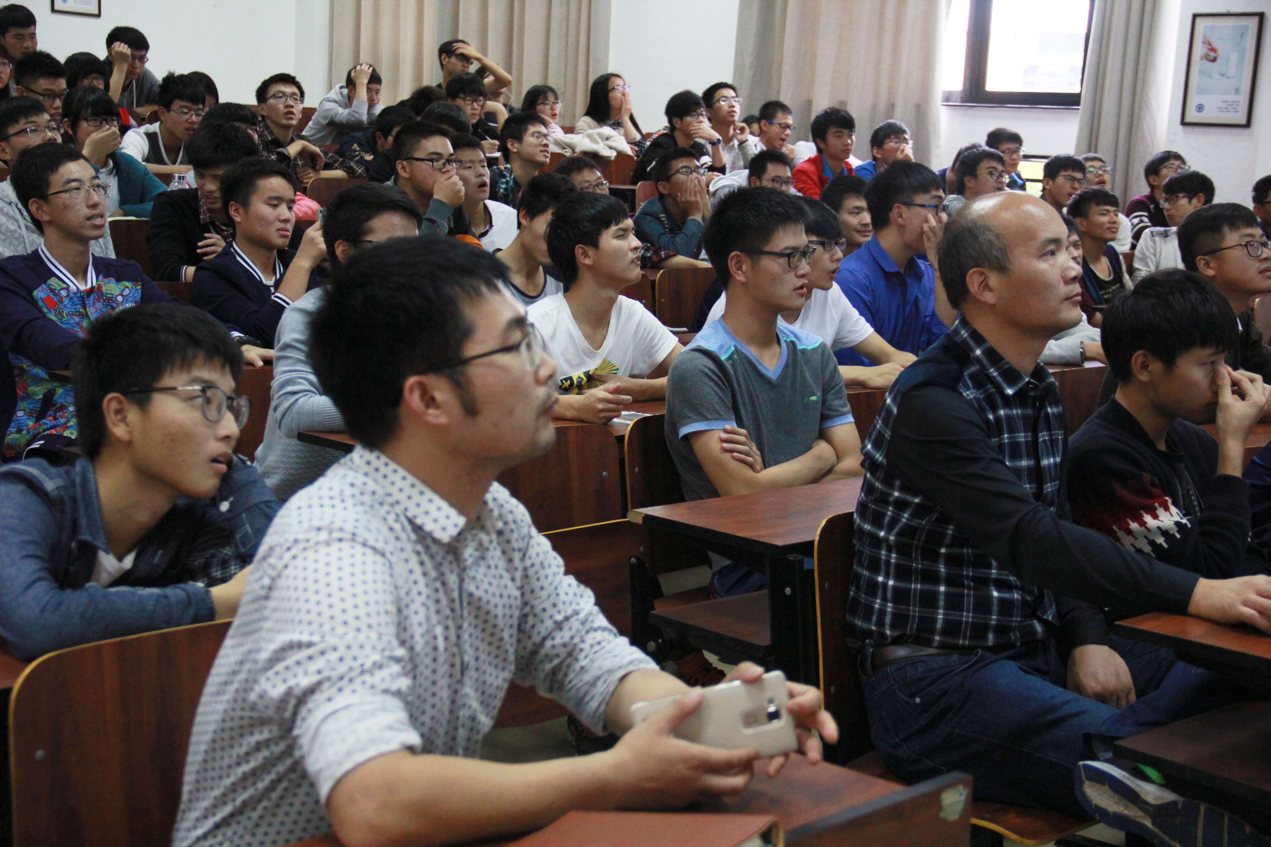 讲座伊始,石警官首先就高教园区学生交通安全情况进行了详细的分析,选用了一些生活中的案例引发对同学们的警示,他提出“严格执法,文明交通,告别陋习,预防交通事故”的观点和倡议,并通过一系列生动形象的视频让老师和同学们了解到遵守交通规则的重要性,许多在生活中看似平常而且同学们都不曾重视的细节,在视频中却都如此惊心动魄,引来同学们的阵阵惊呼。