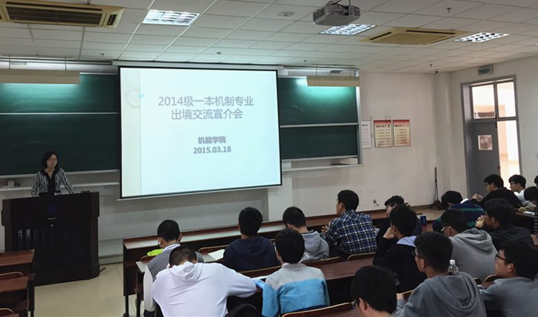 为进一步加快机能学院开放办学进程,全面铺开一本机制专业2015年暑期出境交流工作,2015年3月18日下午,机能学院2014级一本机制专业出境交流宣介会在NF101举行。宣介会由辅导员吴琼老师主持,邀请机能学院副院长王义强教授参加,全体2014级一本机制专业学生参加。