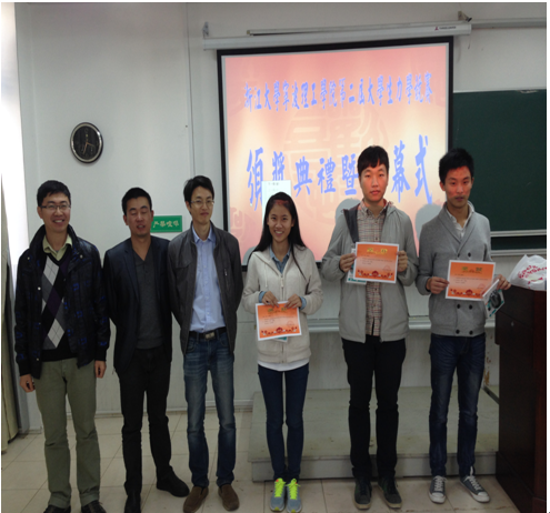 11月14日中午,浙江大学宁波理工学院第二届大学生力学竞赛颁奖典礼暨闭幕式在SA201顺利举办。经过专家的认真评审和大赛组委会的仔细确认,本届力学大赛共决出一等奖2组、二等奖3组、三等奖5组,大会首先为他们举行了颁奖仪式。
