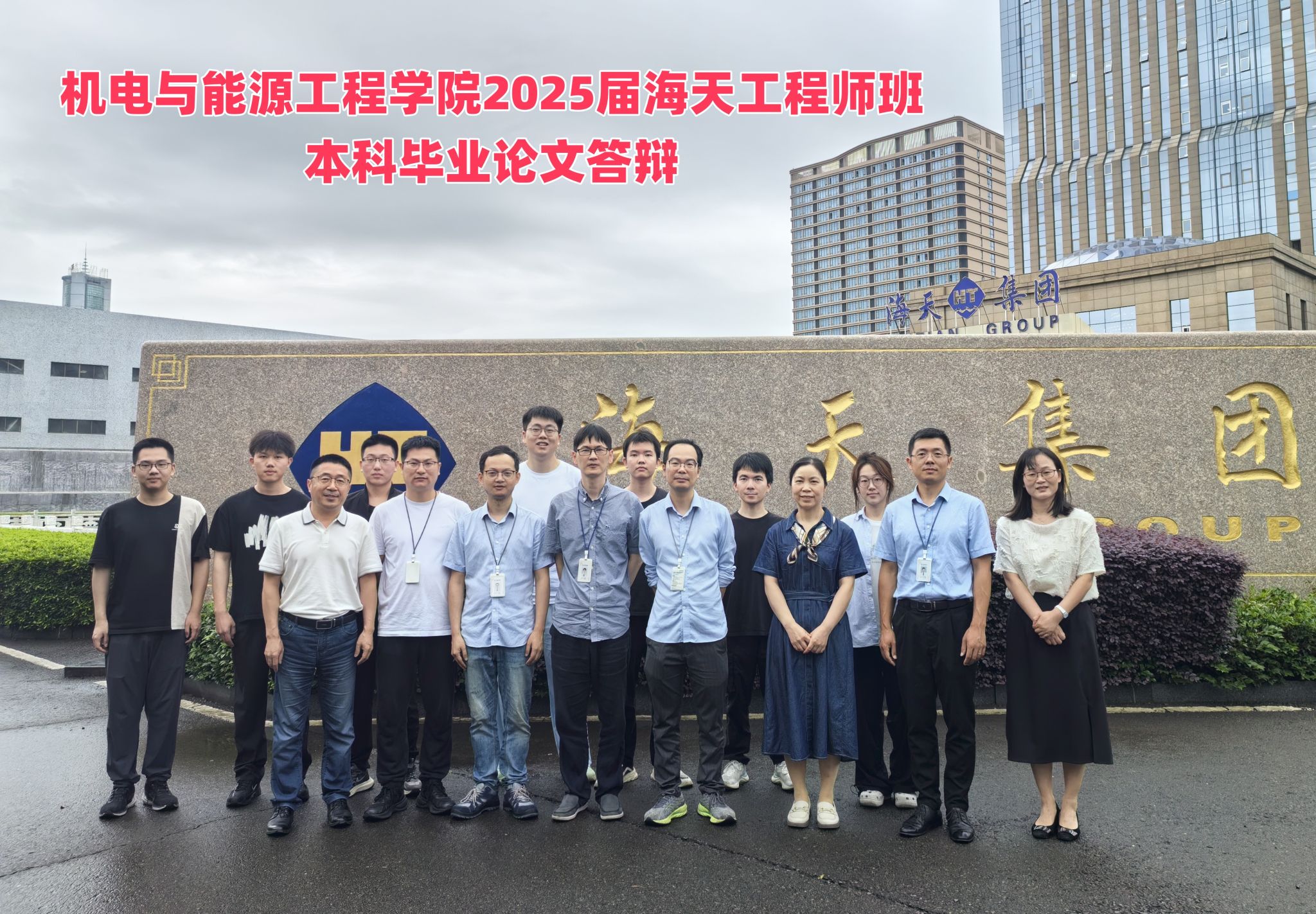 作为国家级制造业单项冠军企业,海天集团深度参与“海天工程师班”培养全流程。自2021年第一届“海天工程师班”开班以来,双方以学生实习、企业参与教学、学生参与企业项目、学生真刀真枪搞毕业设计为抓手,通过企业人才供应链的有效嵌入,校企多维互动,构建了全方位、多层次、深融汇的产教融合育人体系;创新“双导师制”(企业工程师+学校教师)指导毕业设计,近五年校企联合指导学生毕业生论文(设计)累计达70余人,构建了“实习-毕业设计-就业”贯通式培养链,入职海天集团毕业生人数超过100人。2025届7名学生进驻海天集团完成毕业论文,经答辩人汇报、答辩委员提问、答辩人现场回答和答辩委员打分等环节,所有学生均顺利通过毕业设计答辩,答辩委员和企业专家对本次参加答辩的毕业设计给予了高度评价。