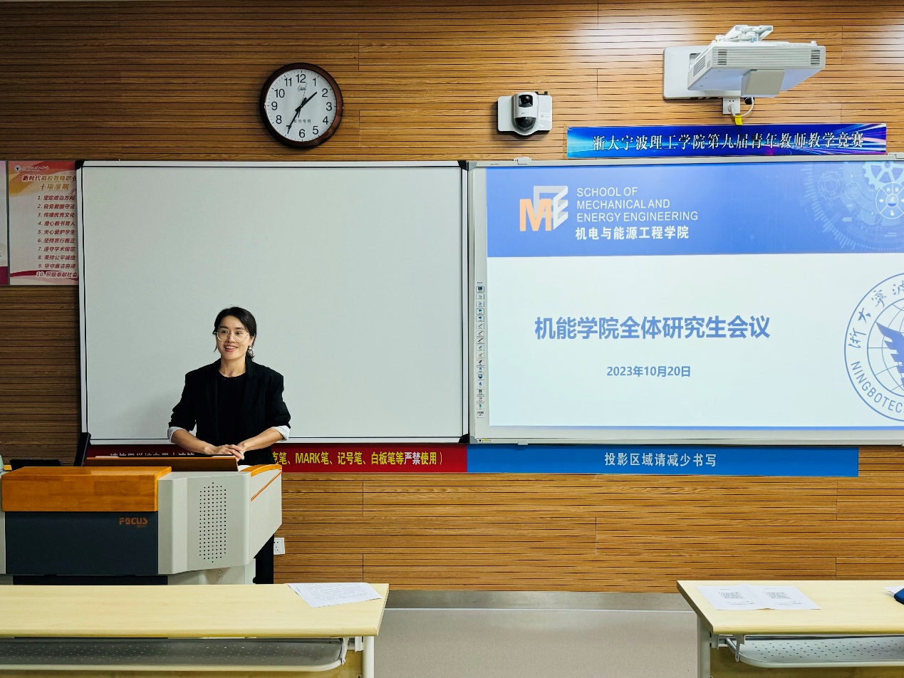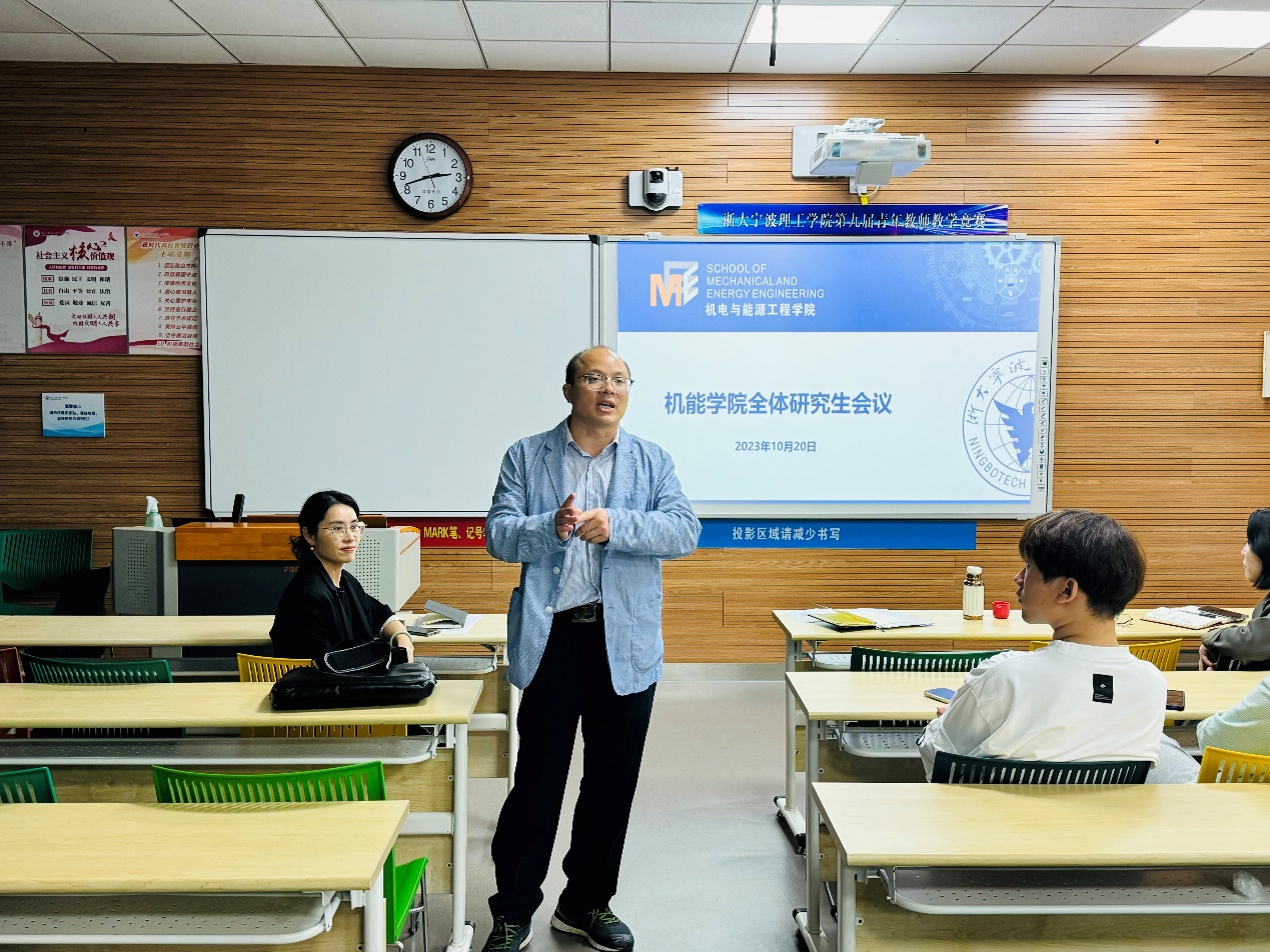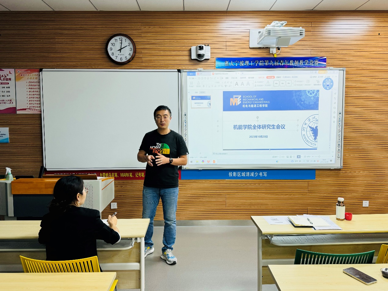 为进一步做好研究生的教育管理工作,10月20日,机电与能源工程学院在NB112召开全体研究生会议,学院副院长宋瑞银,党委副书记、纪委书记林建英,班导师金恒,研究生工作秘书高凯东,研究生辅导员俞逸文以及全体研究生参加。