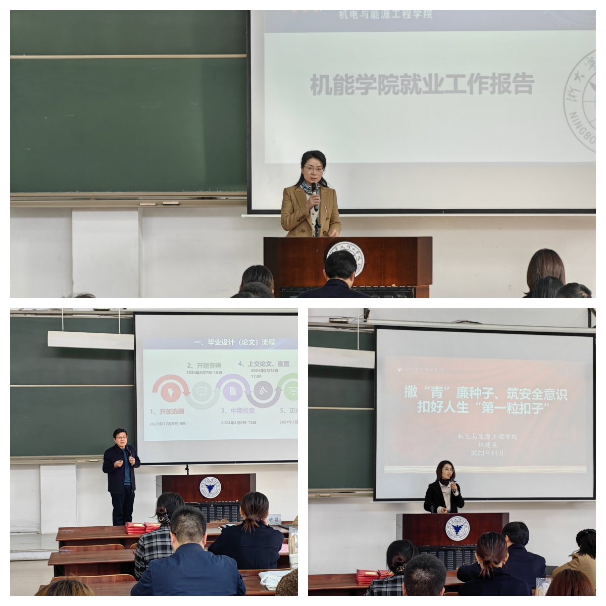 为切实做好2024届毕业生各项工作的开展,扎实推进学生就业工作和毕业论文工作,11月17日下午,机电与能源工程学院于NC102教室召开2024届毕业生大会。学院党委书记江美芬、副院长张学昌、党委副书记、纪委书记林建英,毕业生班导师、2024届全体毕业生以及学院专场宣介会企业的招聘经理参会。会议由学院思政主管刘杜娟主持。