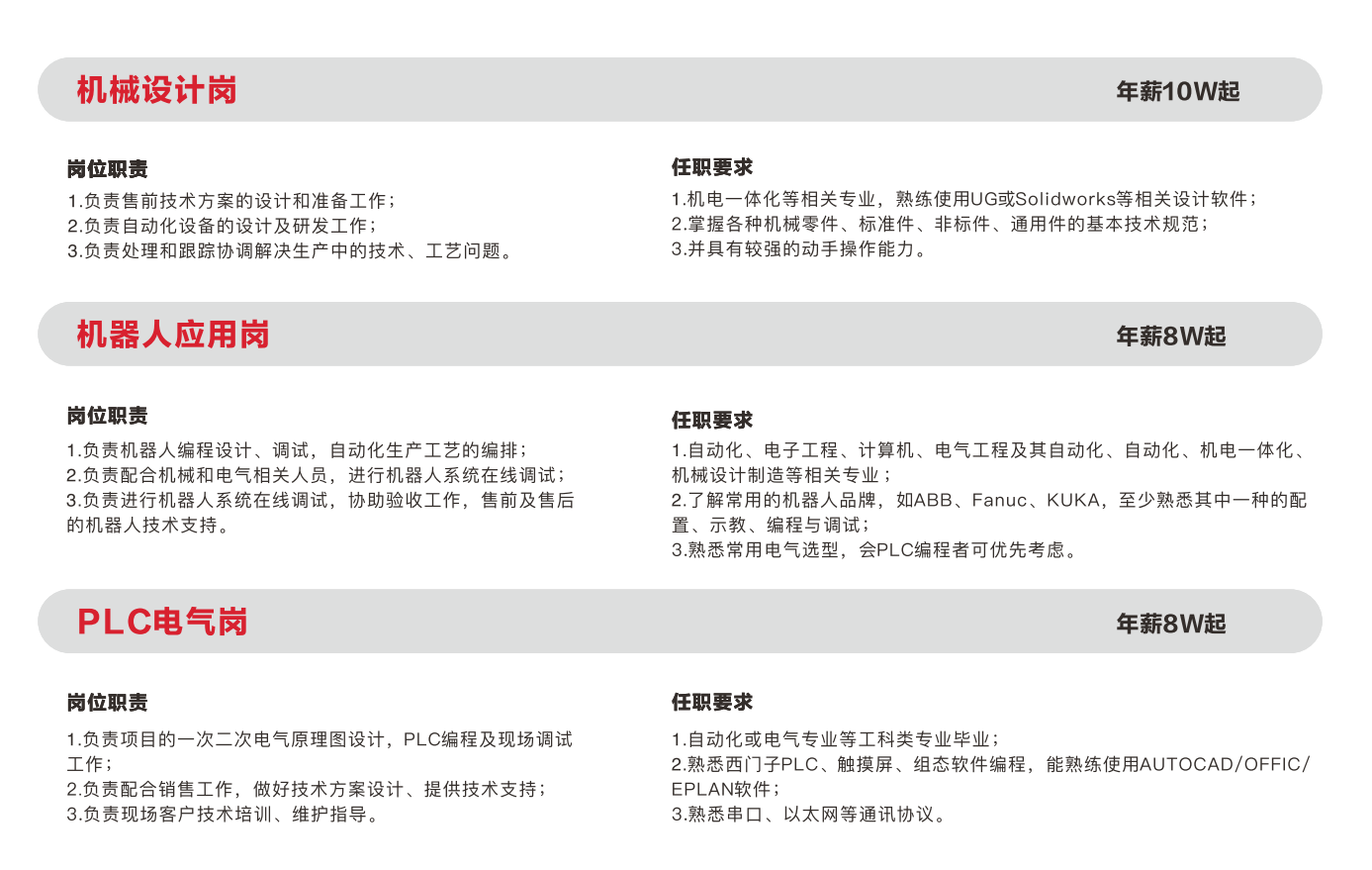 1.熟悉机械制图(如AutoCAD、SolidWorks) 2.有一定的社交能力(校级或班级当过干部)优先 3.熟练使用办公软件 |