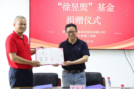 鲁东明副校长和徐昱煚董事长代表校企双方签订了“徐昱煚基金”捐赠协议,并颁发捐赠证书。