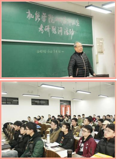 在同学们大三下学期时,学院召开考研动员会,向同学们介绍考研动态情况,为同学们提供有力保障,初始成绩公布之后,学院邀请资深教授、指导老师为上线同学进行全方位的复试指导。