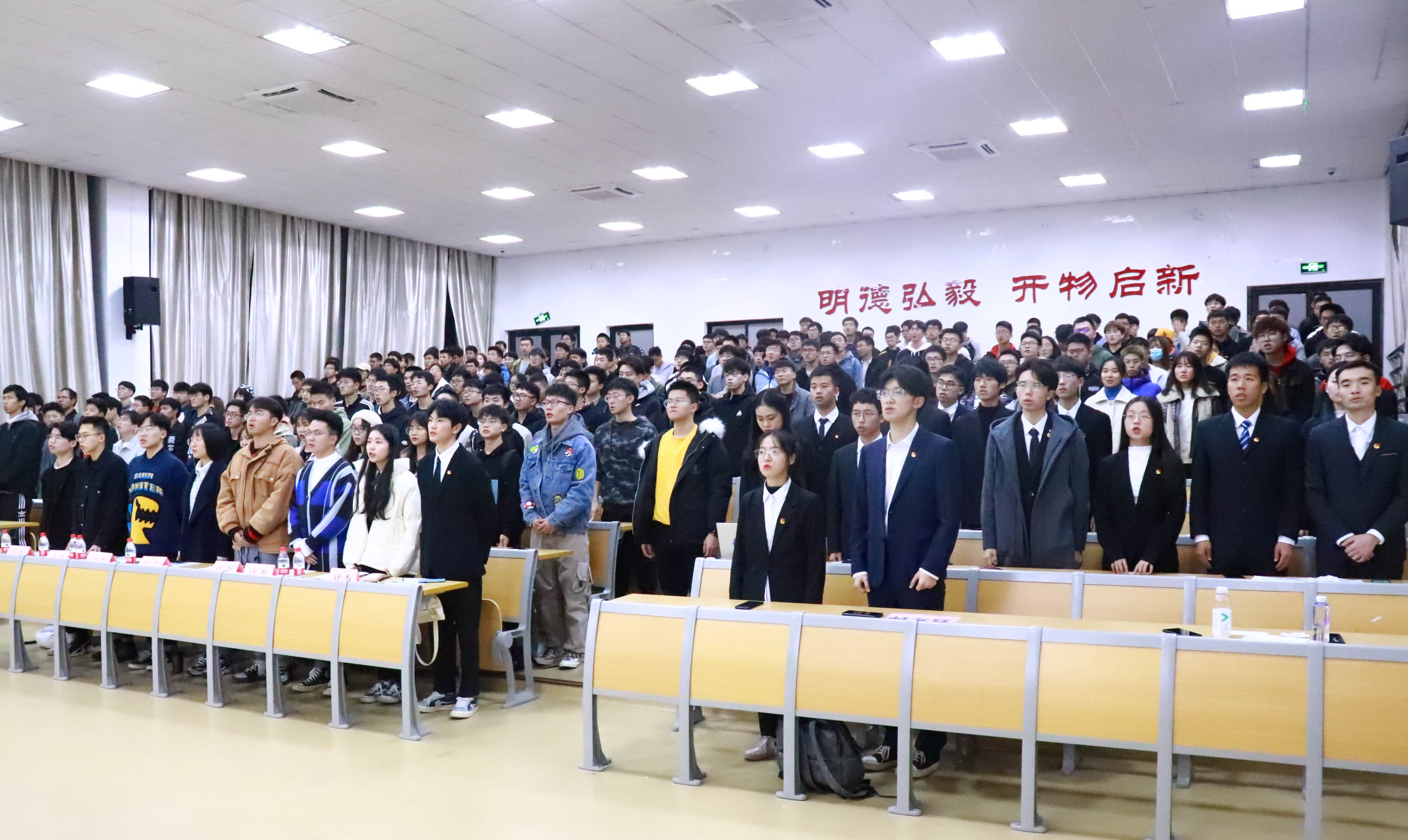 大会第一项,全体与会人员起立奏唱国歌。紧接着,由曹燕老师为本次活动致辞,她提到,疫情期间学院涌现出了很多感人的事迹,希望在座的其他同学们努力向榜样看齐,培养家国情怀和奉献精神,积极向团组织、党组织靠拢。在党章学习汇报过程中,各班团支书从班级党章学习活动的过程、经历和感想等方面介绍自己支部的学习情况。各班级团支部通过多样的学习形式,例如微团课、观看主题教育片、参观等,对抗疫精神和复兴使命进行了深入学习,形成文字、图片、视频等学习成果。经过评选,最终评出一等奖两名,机制204团支部、机械191团支部;二等奖三名,机械195团支部、能源191团支部、机制201团支部;三等奖五名,机械194团支部、机制205团支部、机制202团支部、机械197团支部、机械196团支部。卢佳慧、葛德举、詹润阳、蔡贝宁、王昊天五位同学荣获优秀团支书称号。
