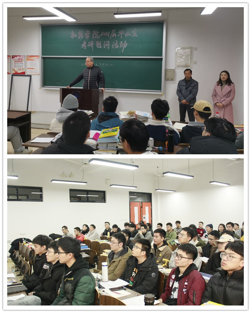 离全国硕士研究生考试越来越近,为坚定考研学子的信念,增强信心,积极备战迎考,机能学院于12月3日下午举办考研慰问活动。学院院长陈光明教授,学院副院长、党委书记童微星老师,学院党委副书记、纪委书记王晶老师和学工办辅导员王海波、曹燕老师一起前往NB422考研教室,看望正在备战的2021届考研学子。