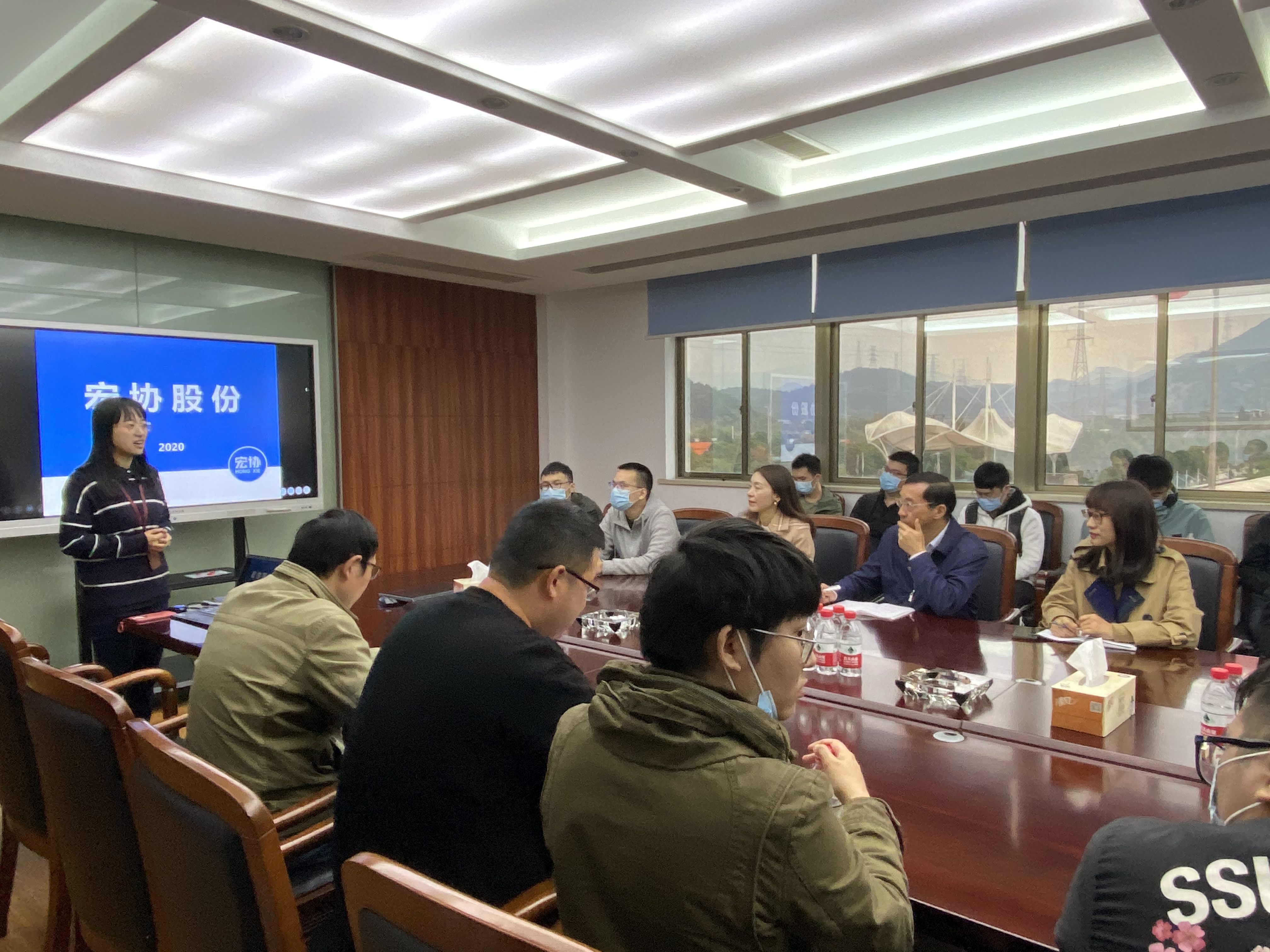 随后,走访了宁波宏协股份有限公司。公司人力资源部经理虞盼攀对学院师生们到来走访表示热烈欢迎,从公司文化、发展历程、产品特色、人才培养、招聘需求等方面介绍了企业,高度赞扬了理工毕业生综合素质好、吃苦耐劳、务实肯干的良好品质。童微星书记代表学院对企业连续6年来设立奖学金表示感谢,双方对人才培养等方面进行交流,校友代表何天磊分享了岗位上的经历和体会。