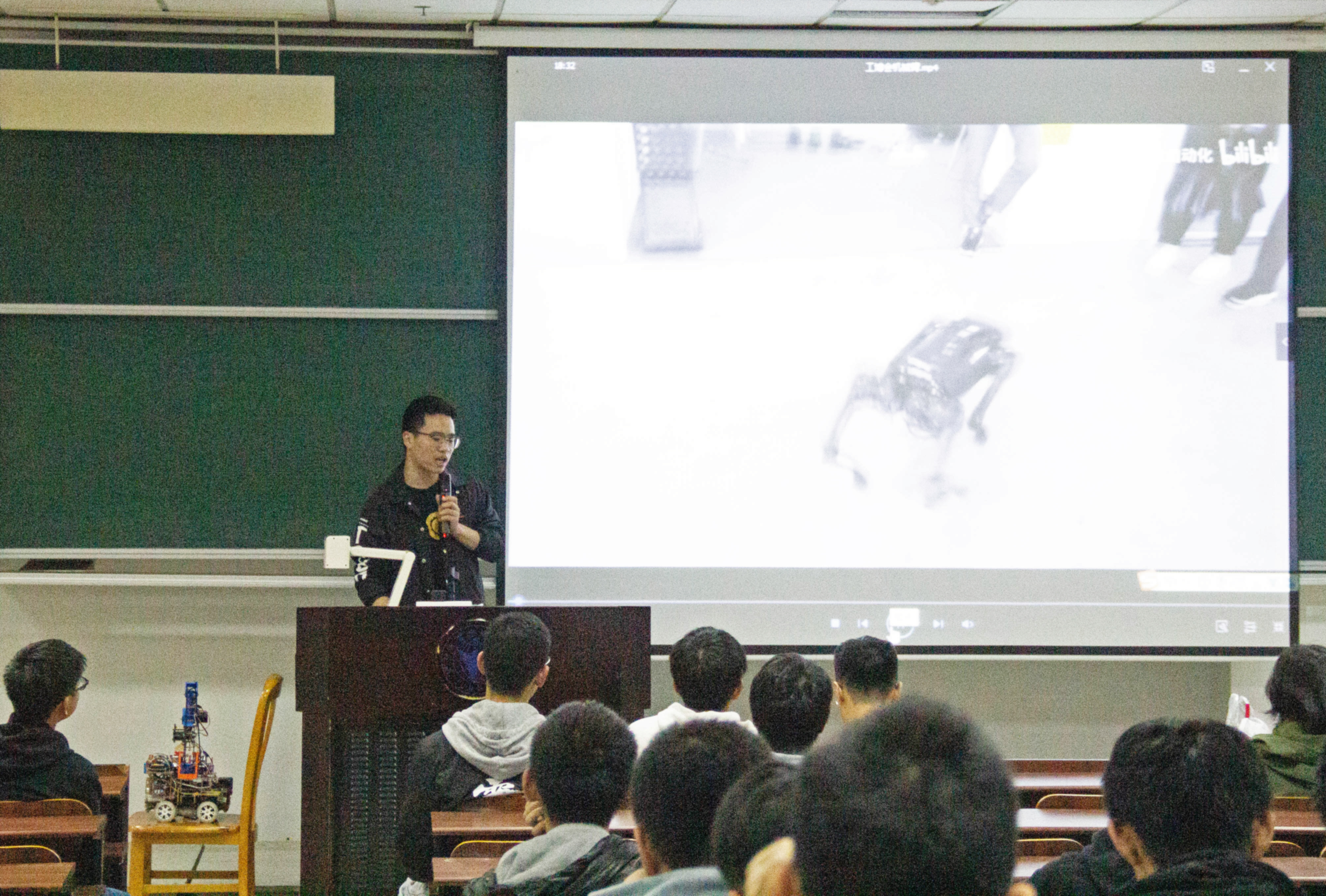 本次活动的主讲人是NIT STEM 社团的学长白志圆同学。学长从未来性培训角度切入,从中国国际工业博览会中的机械狗的展览引入本次的主题。机械狗通过视觉系统识别方位,能在工业生产线上工作,最为突出的是上海节卡机械臂,工业移动机器人,它可以代替人工在汽车生产线上工作。关于职业生活,学长提醒同学们要学会自我定位,积累专业知识与比赛经验,提升个人竞争力。学科竞赛可以锻炼人的智力、意志,培养该方面的兴趣和素养,有利于同学们学会自主思考、逻辑思维能力,锻炼独立解决问题的能力,为今后发展打下基础,希望同学们可以积极参与,不要在最好的年华选择安逸。主讲人最后送给了同学们一句话:工程必须建立在理论上。