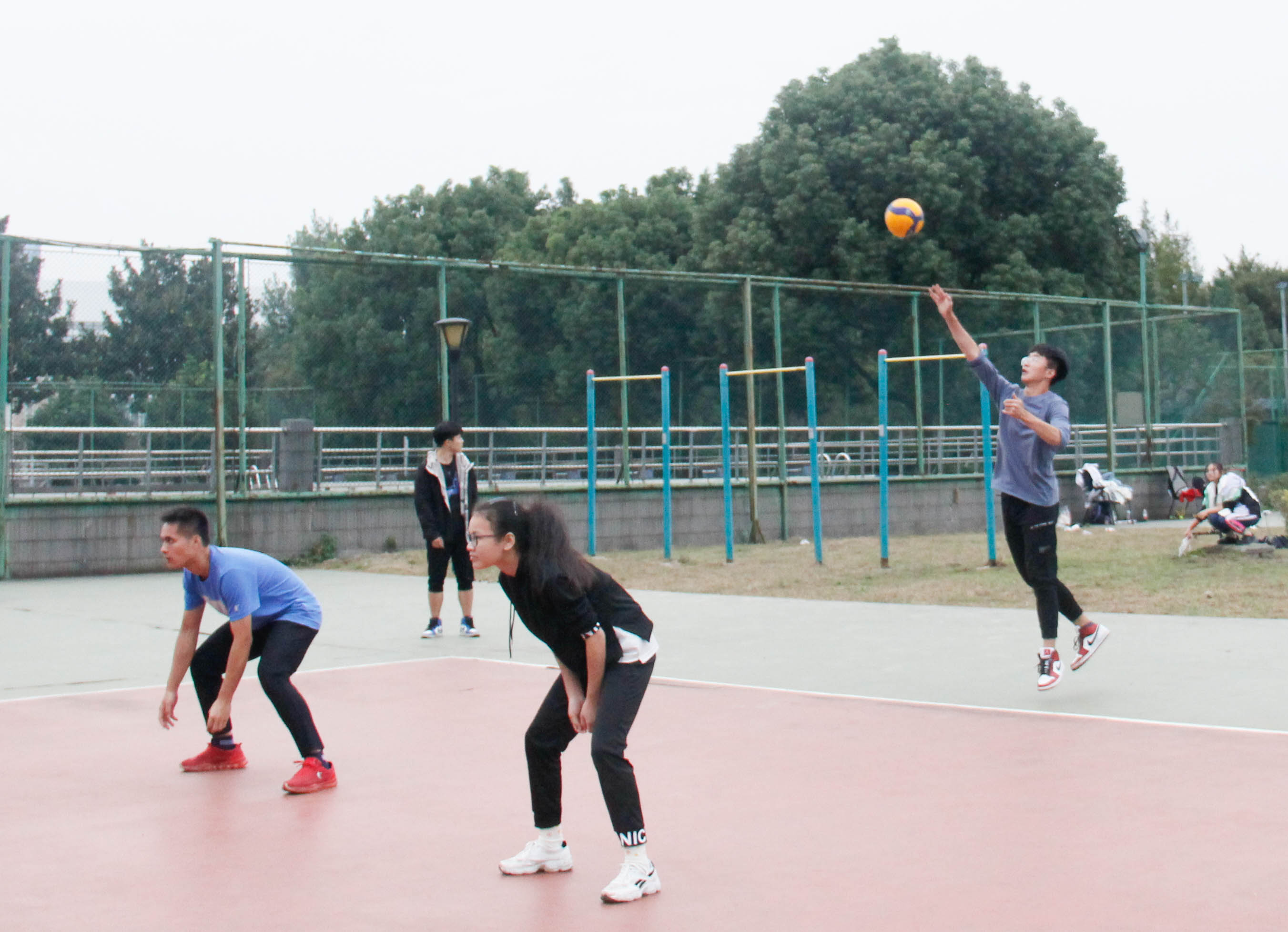 10月17日下午,新生排球赛决赛在排球场举行,参赛队员们各个斗志昂扬、意气风发。半决赛中机能学院战胜数据学院获得晋级名额,在决赛中与传媒与法学院角逐冠军,机能学院的老师们和同学们都纷纷到场为排球队员们加油鼓劲。