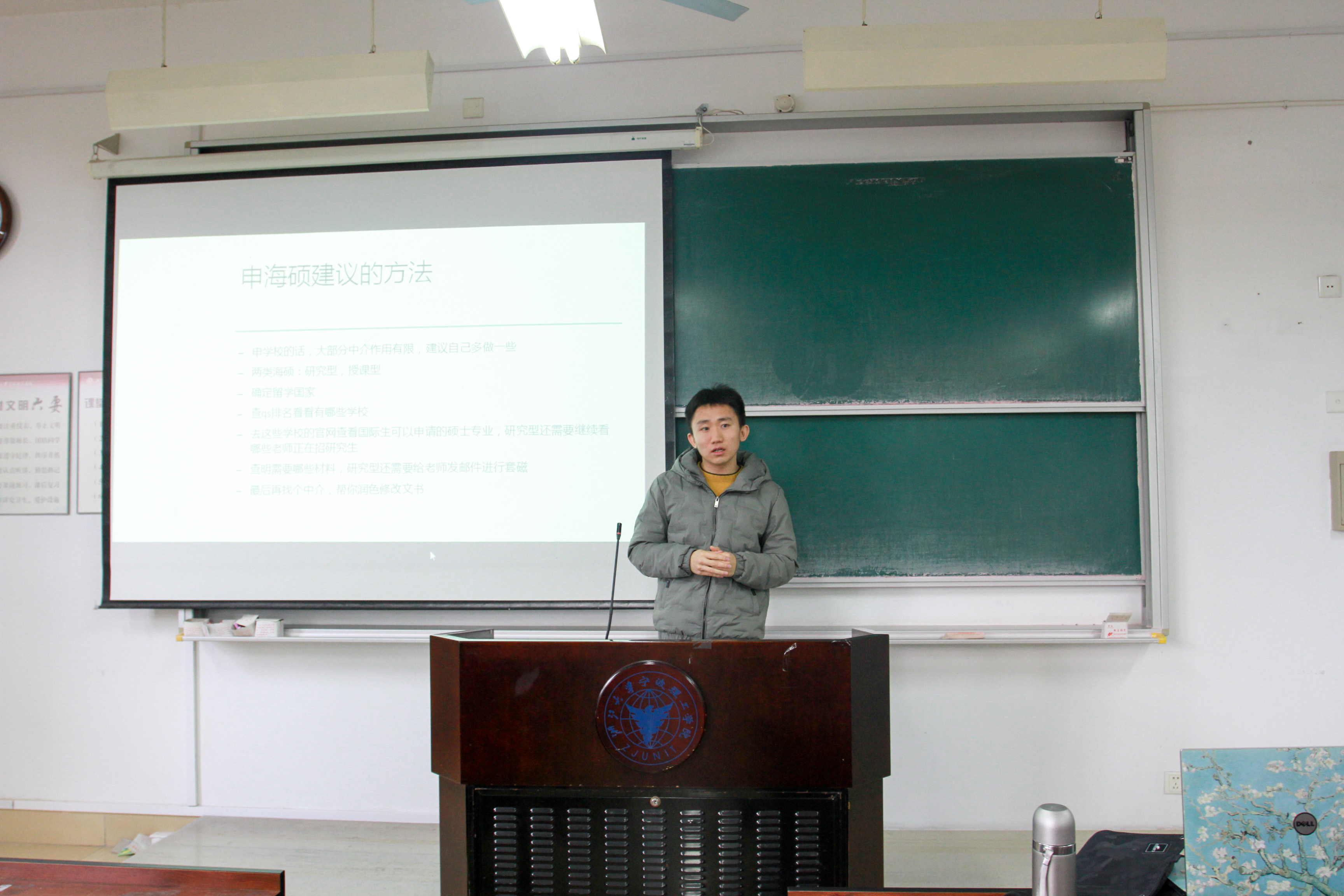 为提高学院学生对出国升学及求职就业方面的了解,机能学院于12月6日下午3点在NB205举行校友分享会,邀请了学院2017届优秀校友吴浩丘,来分享他出国的经验,并为学弟学妹做出国留学申请及就业方面的相关指导。