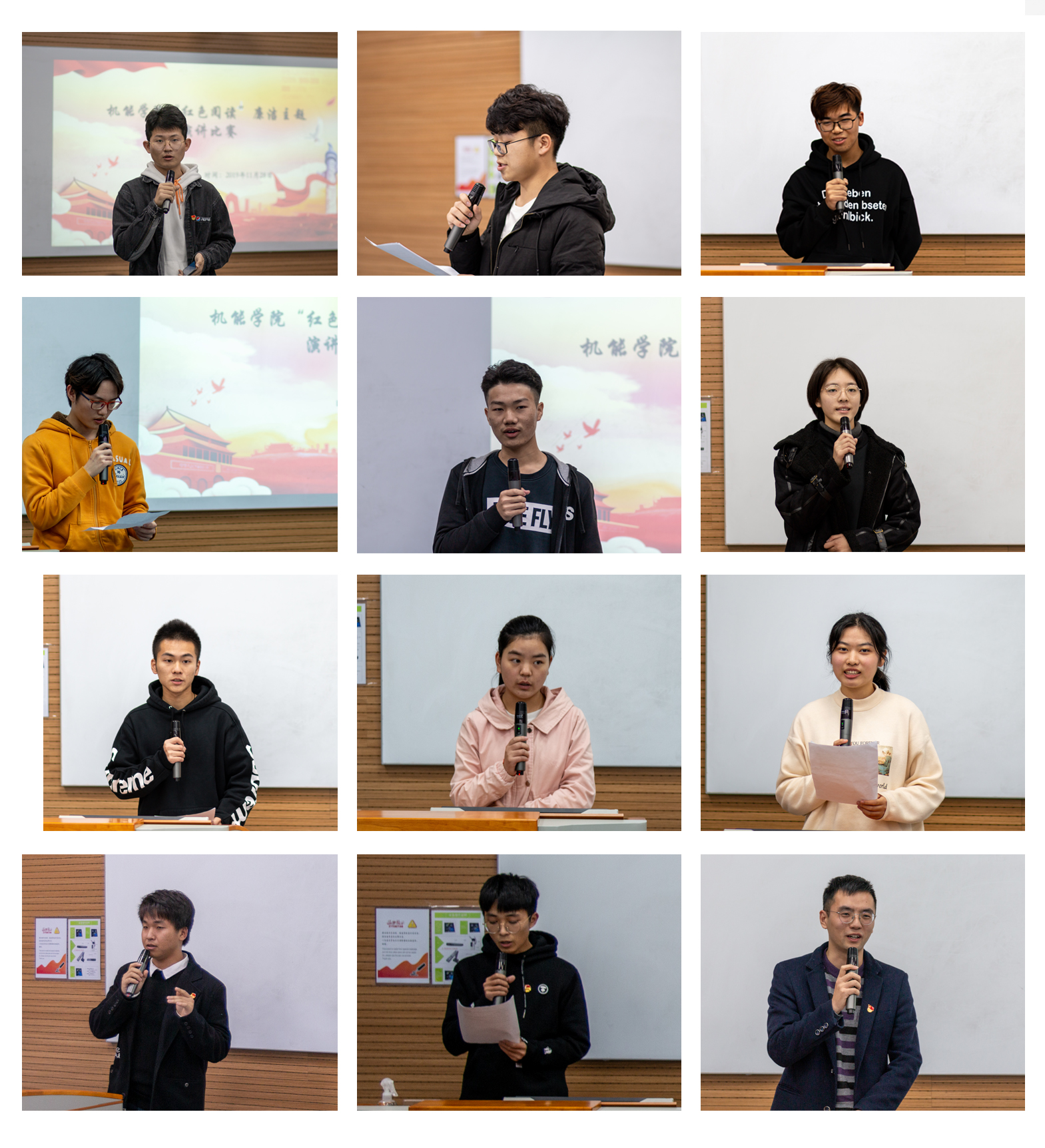 此次“红色阅读”活动以廉洁故事及相关书籍为主要阅读内容,参赛选手们自信满满,旁征博引,围绕社会主义核心价值观,结合当今社会现状,全面而生动地阐述了自己对于廉洁的独到见解,博得了在场观众一阵又一阵的掌声。最后,宋祉颐同学获得一等奖,倪阳锋、丁东阳同学获得二等奖,蒋依诺、柳家伟、付园园同学获得三等奖,徐泽、陈稳稳、沈轲同学获得优胜奖。大家对他们取得的优异成绩表示了热烈的祝贺,两位老师则认真细致地对每位参赛同学的演讲作了精彩点评。