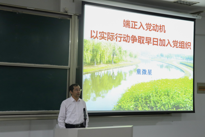 结合“不忘初心,牢记使命”主题教育工作,2019年10月31日sf106,机能学院党委书记、副院长童微星老师为机能学院、土建学院第37期入党积极分子培训班学员讲授党课。