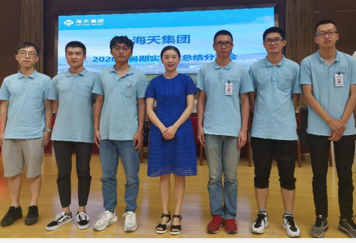 8月27日,海天集团2020届暑期实习总结大会隆重举行,机能学院金晨炜、罗志强、俞进凡和黄凌霄等4位同学逐一上台进行总结分享,分享与来自浙江工业大学、杭州电子科技大学、浙江理工大学和宁波大学的实习生共同组队一起参与项目实习的心得体会、收获感悟。台下一次次掌声,为同学们为期2个月的收获给予极大的肯定。机能学院党委副书记王晶、就业辅导员王海波赴海天集团一起见证了同学们的成长。