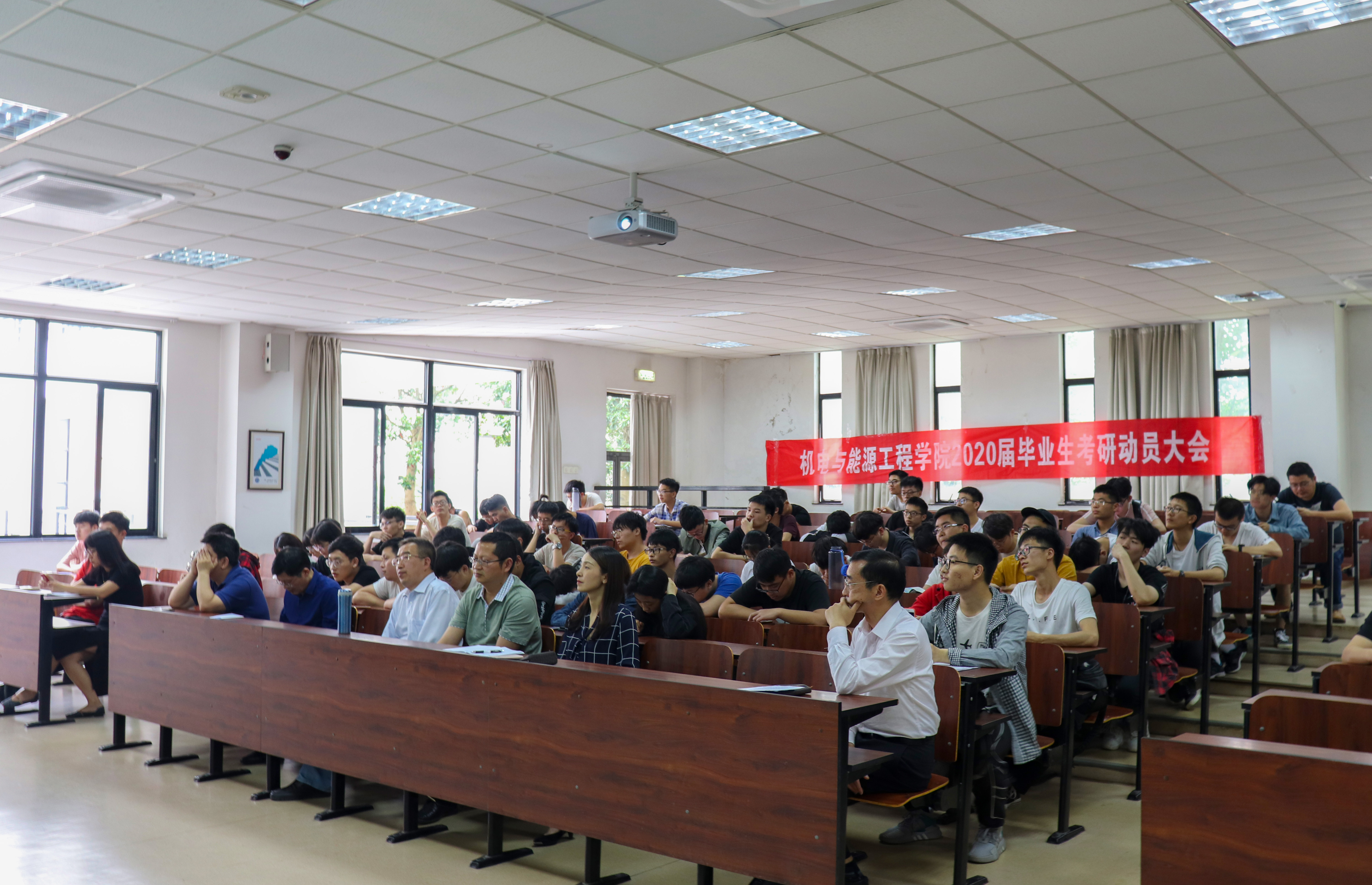 为加强学院学风建设,帮助同学们确立正确奋斗目标,增强考研的信心,提升考研竞争力, 5月31日下午,机能学院在NC101举行2020届毕业生考研动员大会。学院院长陈光明,党委书记、副院长童微星,党委副书记王晶,副院长张学昌,包装所副所长张炜,机电所副所长黄方平,能源所沈祥智等老师和全体辅导员出席会议。学院2016级160余名有考研意向的学生和2015级考研成功的学长代表参加了大会。会议由学院党委书记、副院长童微星老师主持。