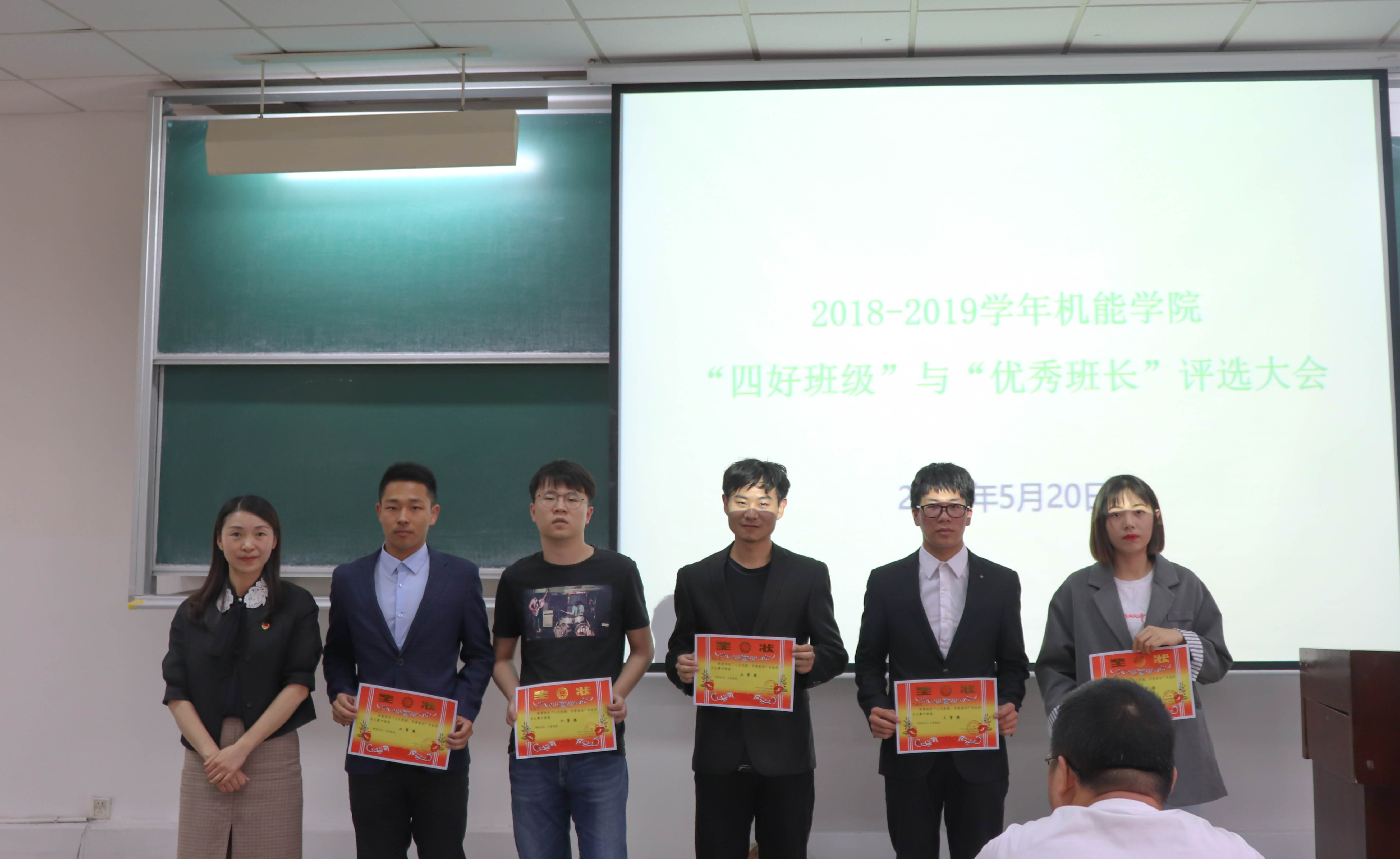 5月20日下午15:40,机能学院在NC201教室举行了2018-2019学年“四好班级”、“优秀班长”评比大会暨“人文机能,书香致远”好书推荐活动书法集锦活动颁奖仪式,出席本次会议的有学院党委副书记王晶老师、学院思政副主管、团委书记仇芳老师、辅导员王海波老师、团委副书记刘舒老师、兼职辅导员徐星晔同学,学院各班学生代表和主要学生干部参与了本次活动。