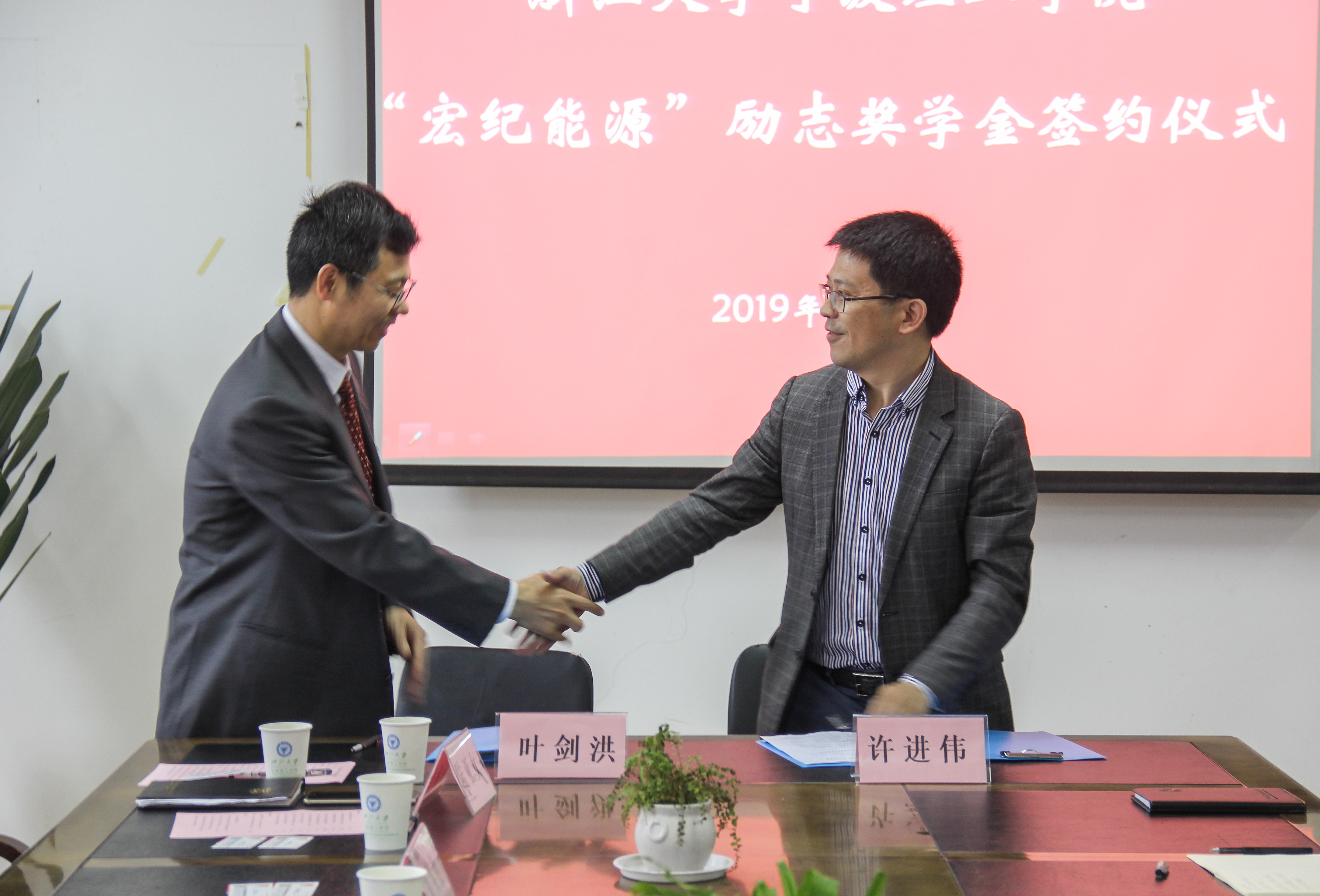 5月17日上午8:30,学校“宏纪能源”励志奖学金签约仪式在机能学院会议室举行。浙江宏纪能源科技有限公司董事长许进伟、总经理(机能学院优秀校友)王炎震、董事长助理李攀成,学校教育发展基金会理事长费英勤、秘书长叶剑洪,学校党委学工部部长、学生处处长陆亚女,机能学院院长陈光明、党委书记副院长童微星、副院长胡长兴、党委副书记王晶等领导和嘉宾出席会议。机能学院学工办全体老师以及能源与环境系统工程专业学生代表参加会议。本次签约仪式由机能学院党委书记童微星主持。