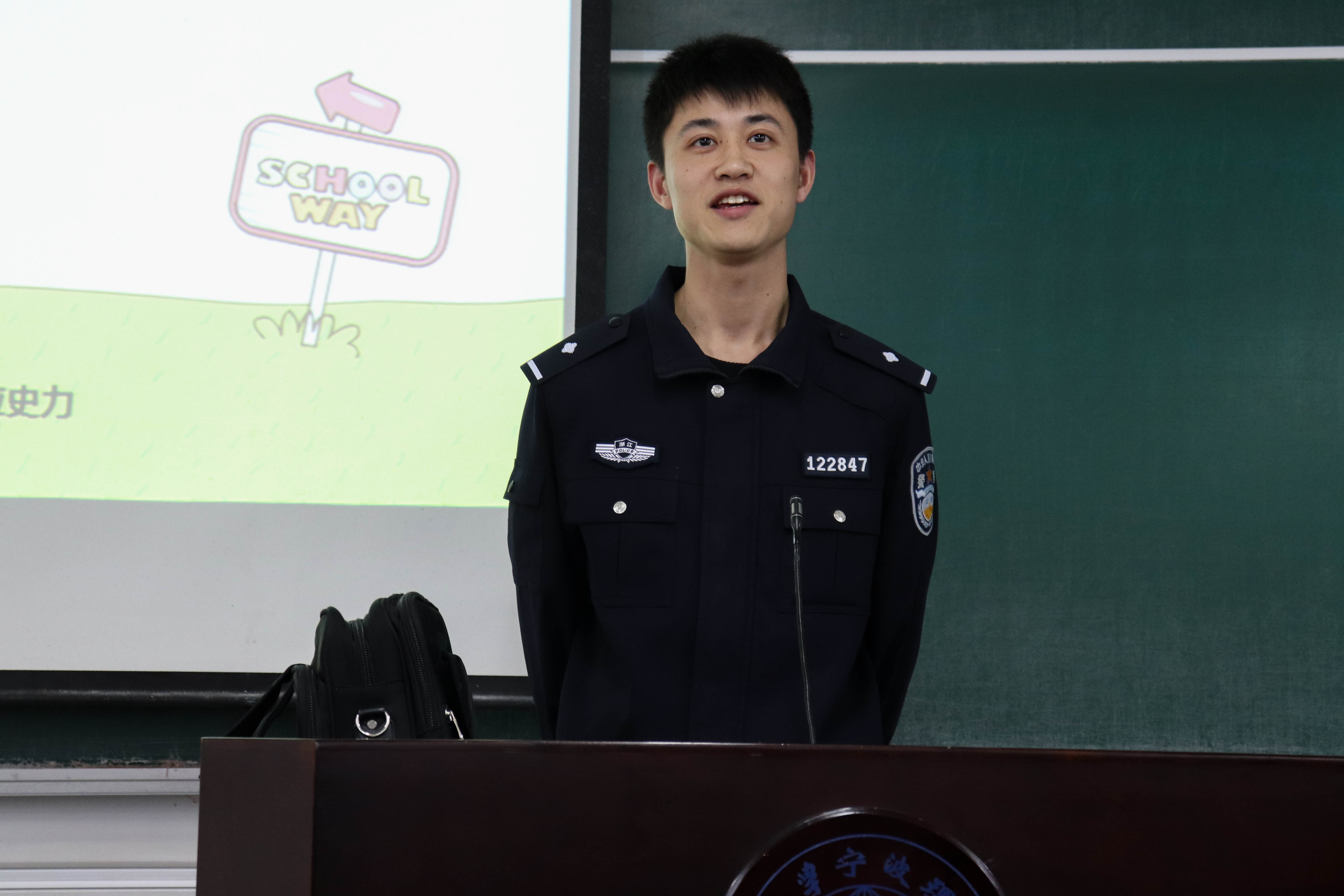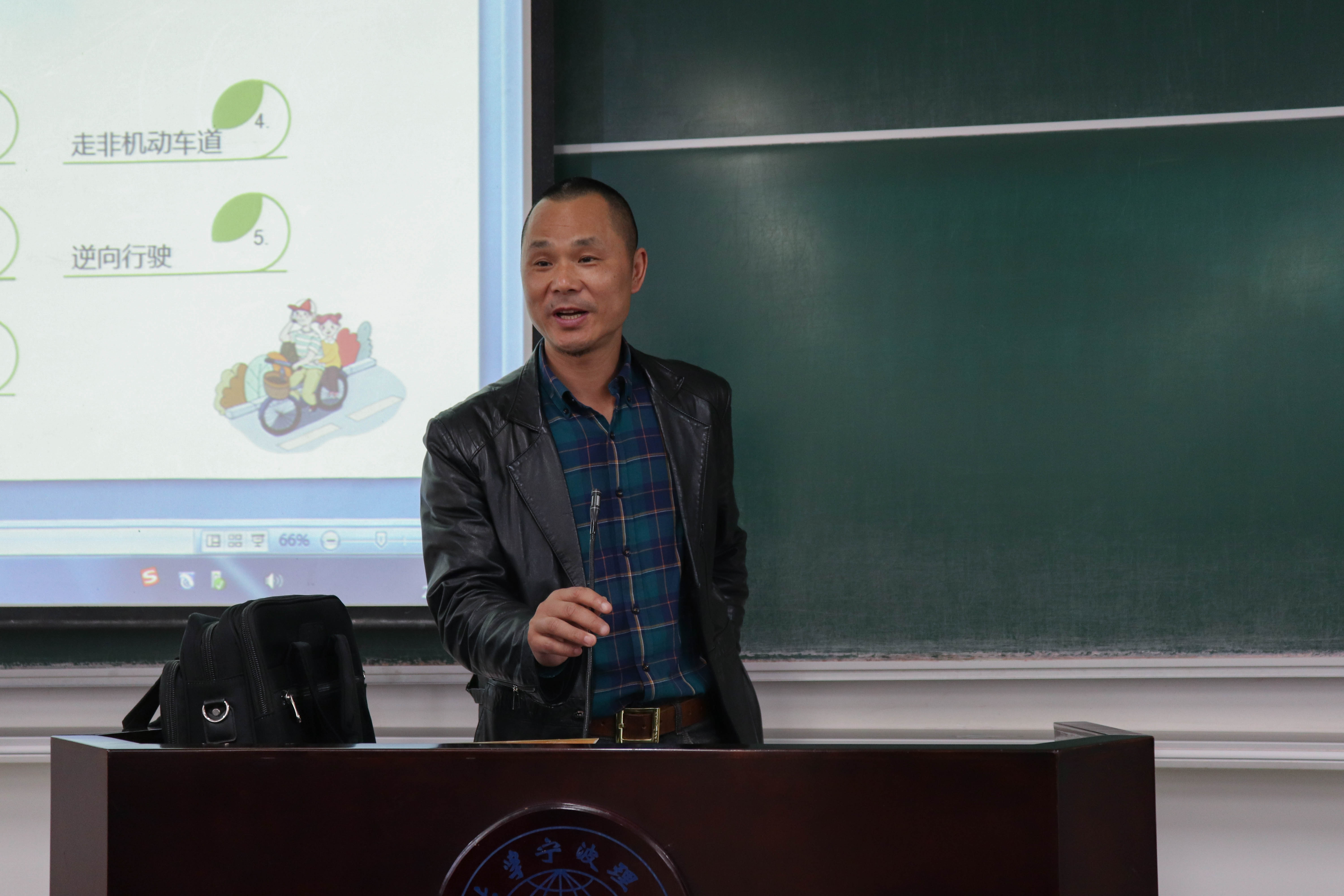为加强交通安全宣传力度,增强大学生交通安全意识和自我保护意识, “平安微课”走进机能交通安全讲座于3月20日下午三点在NB215举行。出席本次讲座的人员有宁波市公安局鄞州分局交警大队钟公庙中队交警、保卫处冯财杰老师、机能学院刘舒老师,机能学院大一全体学生。