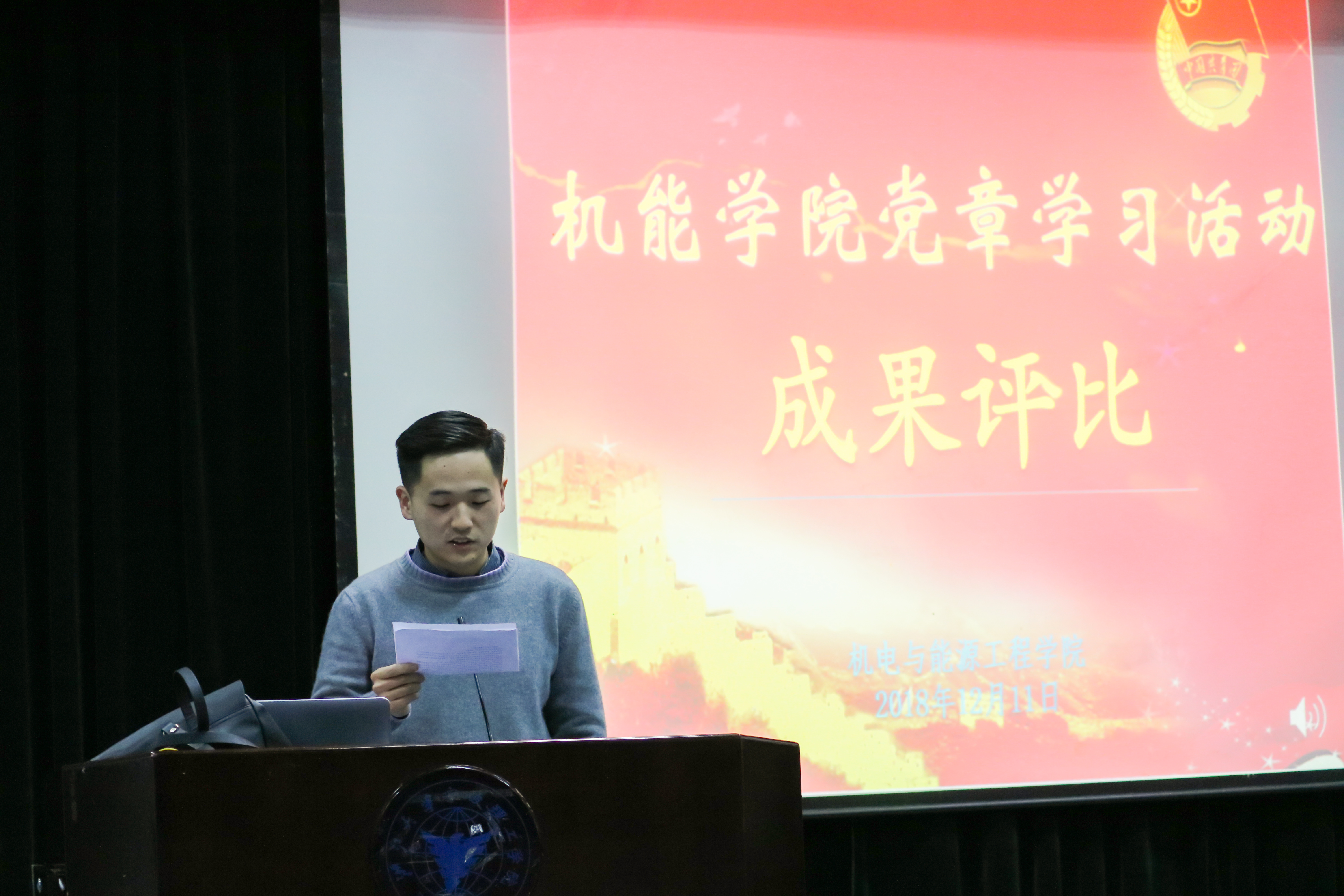 为更好地学习宣传贯彻党的十九大和团十八大精神,充分发挥共青团组织在改进和加强大学生思想政治教育中的作用,机能学院团委组织各团支部在11、12月集中开展了团支部“党章学习”活动,并于12月11日晚6点在NF103举行党章学习活动评比“成果汇报”环节暨学院党章学习活动评比颁奖典礼。参加此次活动的有机能学院团学骨干、各学生党支部委员,15、16级各团支部委员、各班班委、积极分子、党员以及18级全体学生。