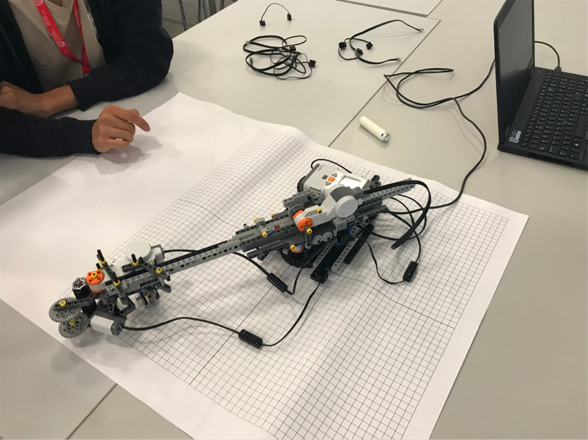 在Robot petition(机器人比赛)分为两个Test,Test1要求我们设计的机器人能自动识别黑、白两色小棒,让机器人自动抓取摆放在坐标图纸Y轴上的黑色小棒并逆时针旋转将小棒放到X轴上,白色小棒沿顺时针放到X轴;Test2要求我们设计的机器人能自动地把坐标图纸上任意放置的黑白两色小棒抓取并放置在老师规定的位置。实验其间,老师只给我们准备了必要的材料,在讲述了机器人要求和比赛的评分标准之后便让我们自行设计、制作机器人,独立完成机器人编程和测试。机器人的设计和制作对于大一的学生来说是十分陌生的,我们没有实践经验也没有学过相关课程,与此同时机器人编程对我们来说也是一个挑战,老师只发放了一份全英文的编程教程资料让我们自己学习,十分考验了学生的英语基础和学习能力。虽然课程任务十分艰巨,但是所有同学经过四天的努力都出色地通过了Test。