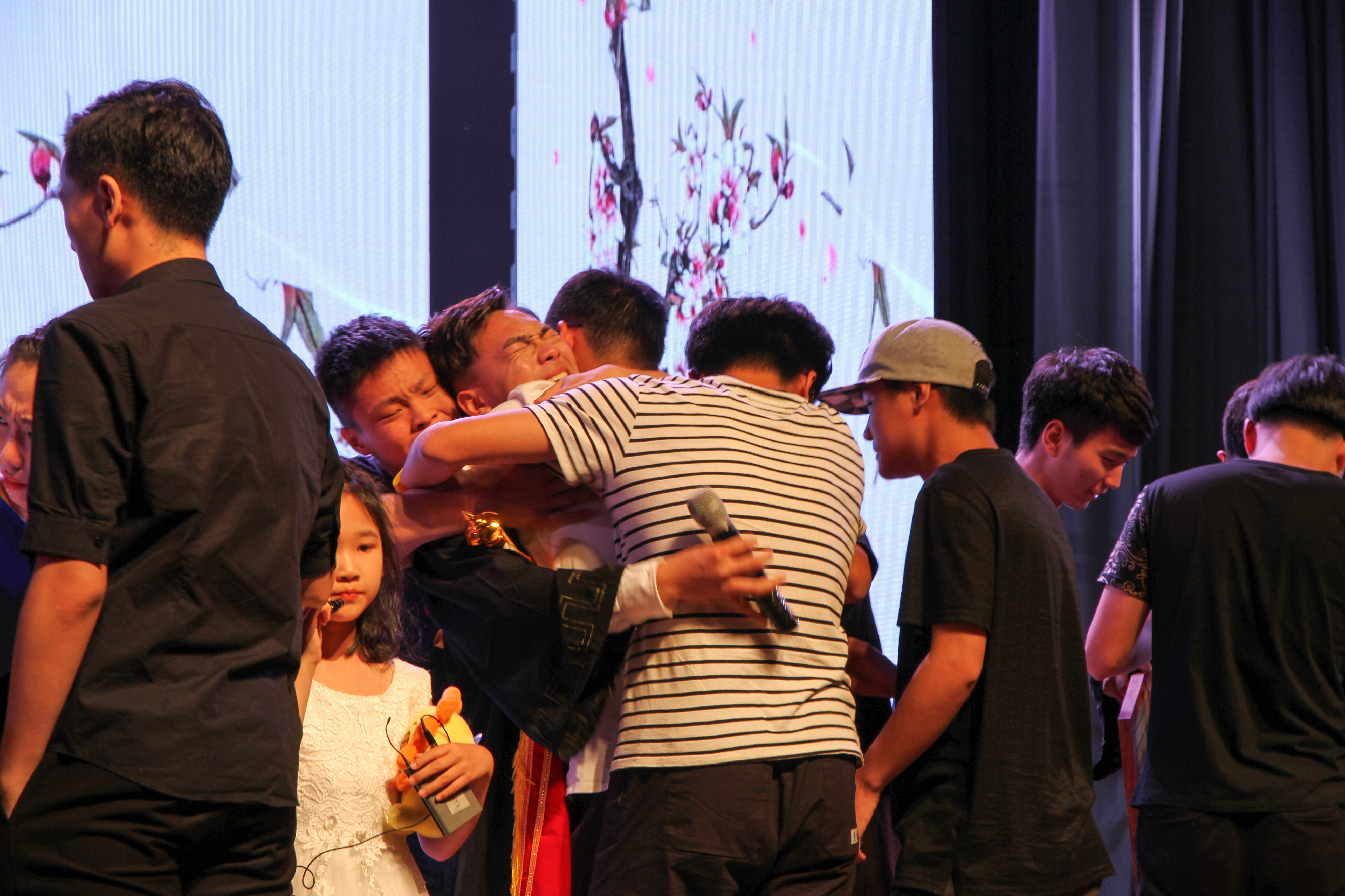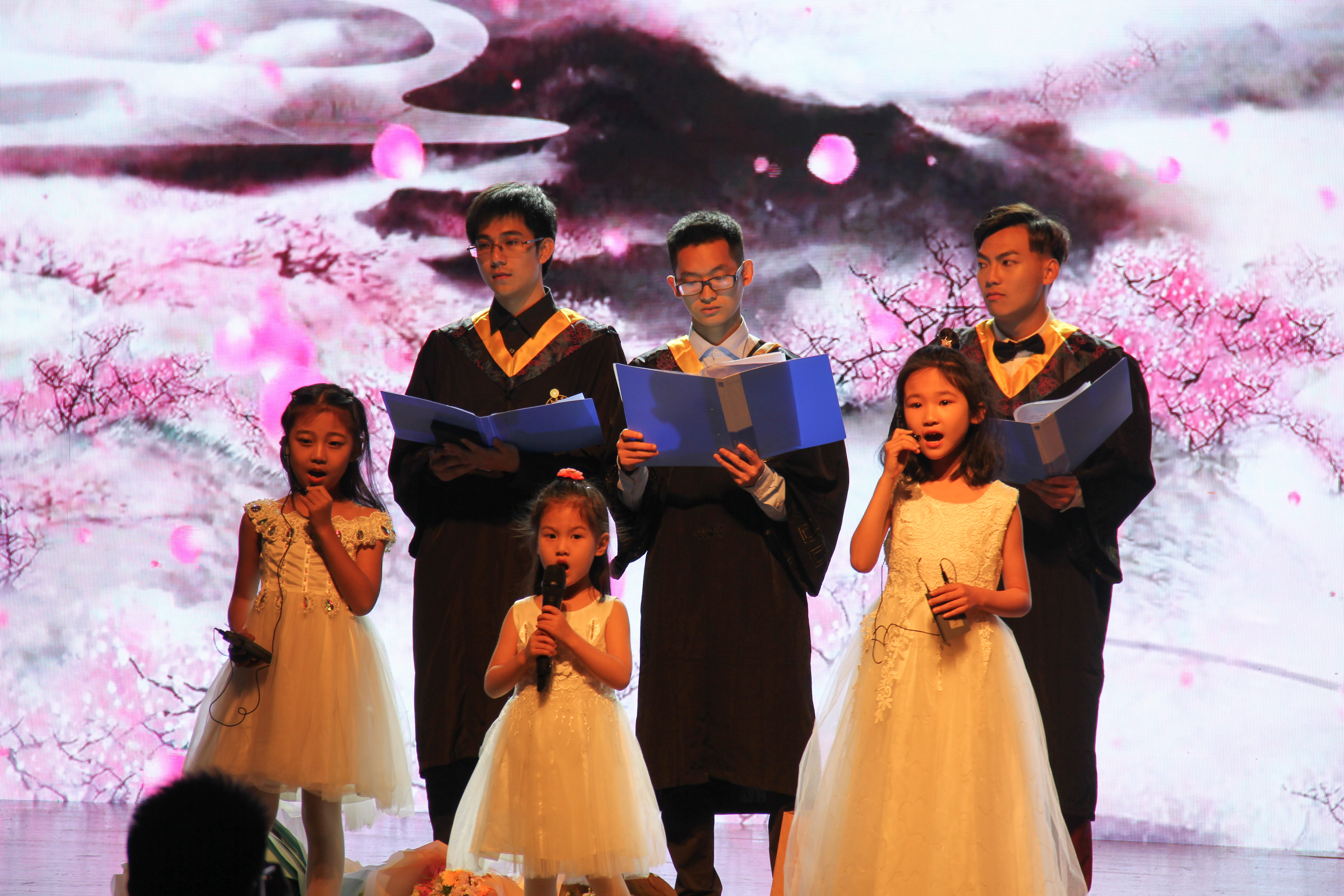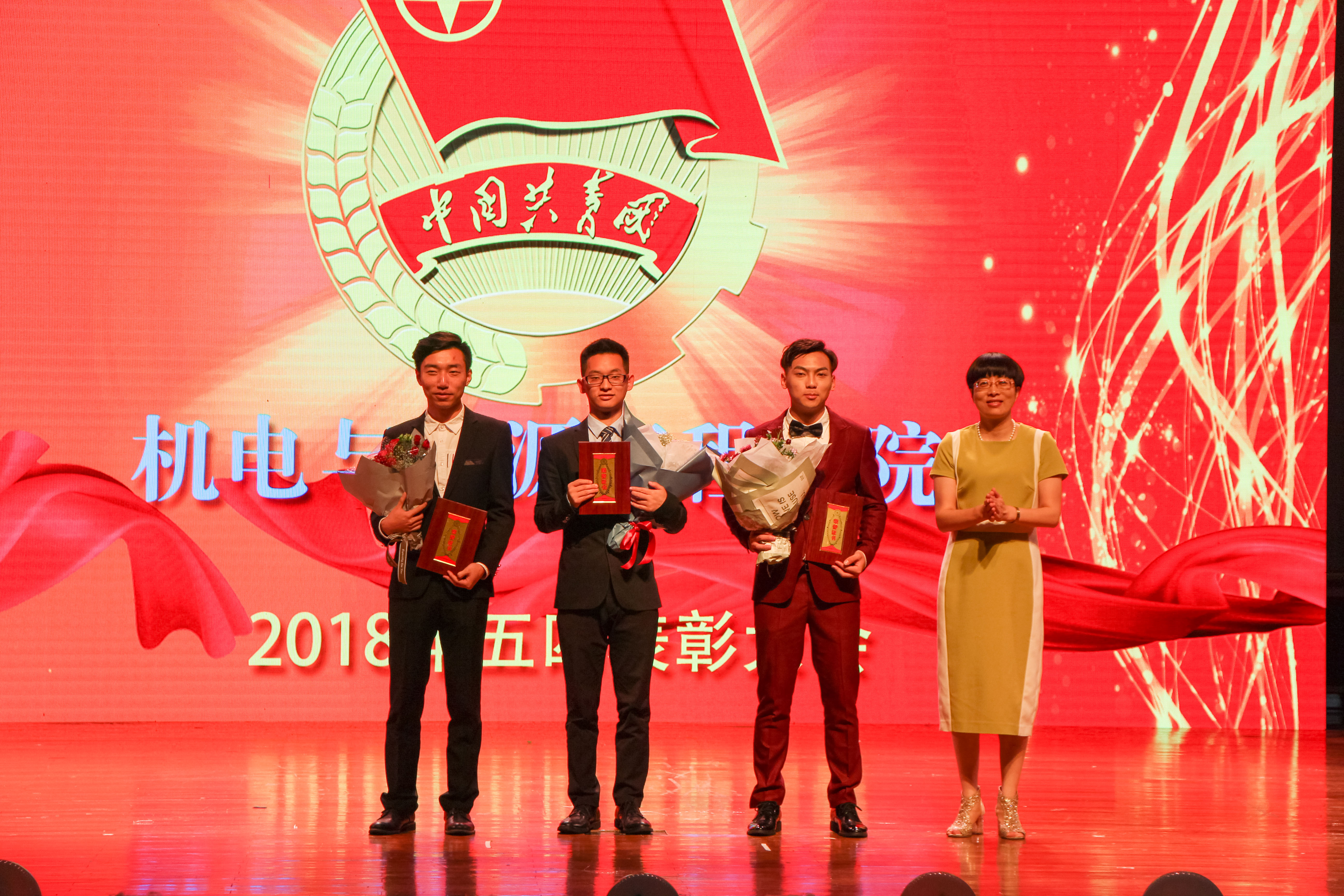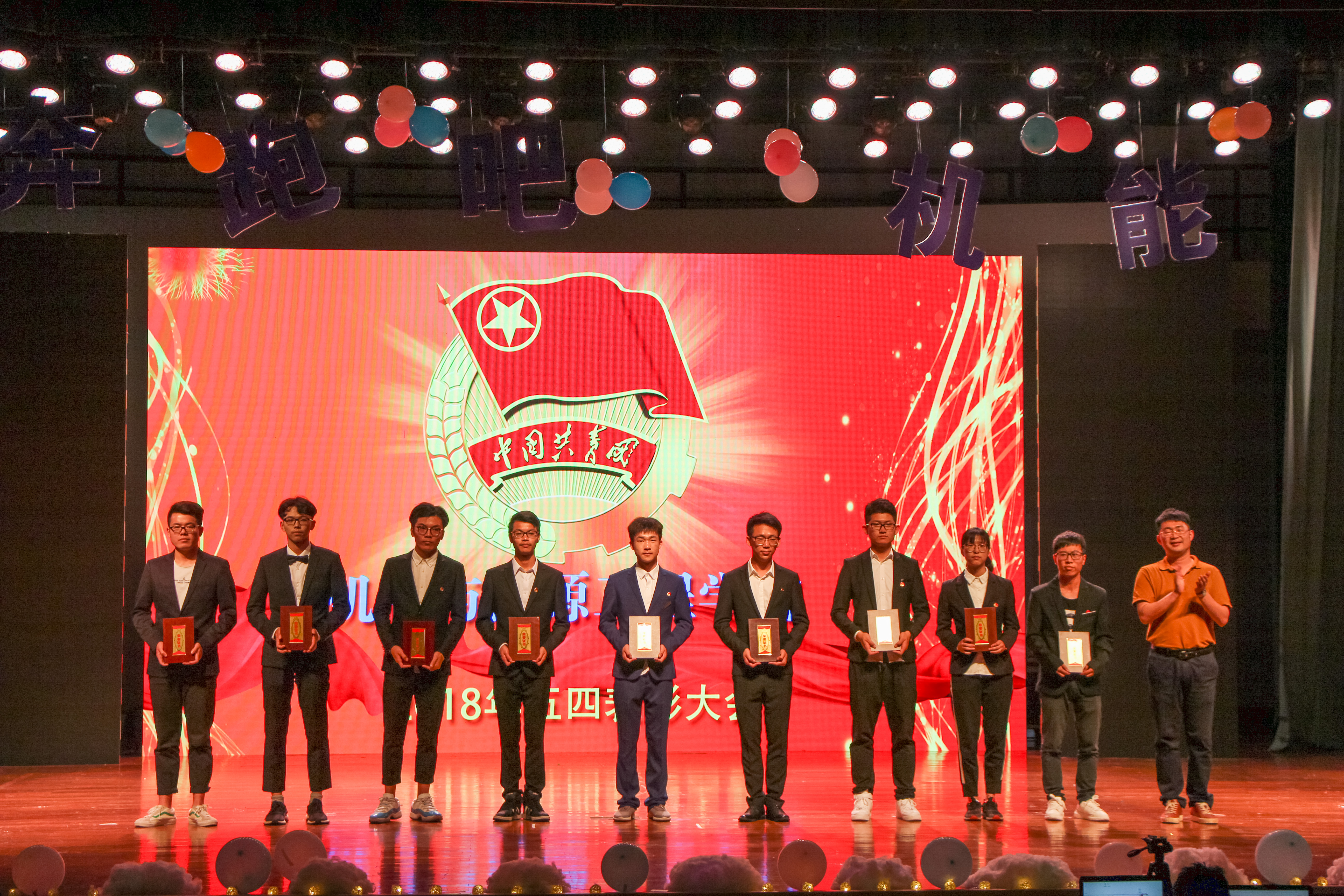 首先进行的是五四勋章颁奖环节,由胡鹿鸣老师宣读表彰文件,各位老师隆重的为本年度优秀团员、优秀团干、四好班级、优秀团支部、优秀班长、十佳学生党员以及突出贡献奖的获奖同学们进行颁奖。随着大屏幕上老师寄语的暖场视频,晚会渐渐拉开帷幕,一段活力四射的开场舞迅速点燃了全场的气氛。尔后生动的情景剧,演绎了大学四年的一点一滴,引起阵阵欢笑的共鸣;美妙的琵琶律与活泼的游戏使晚会渐入佳境。第二篇章拉开序幕的是各位朝夕相处的辅导员老师们,歌曲串烧《放心去飞》寄托了他们对学子们的殷切期望,引来台下阵阵欢呼。毕业生中的“十佳歌手”以一曲《少年锦时》诉说着学长们的不舍;学院舞蹈队带来的舞蹈《Bboom Bboom》点燃大家热情的火焰;精彩的光影表演以神奇的效果将晚会气氛推向了高潮。压轴节目是由毕业生班助和小朋友们一起表演的诗朗诵《送别》,深情的合唱令人泪目。时间随着一幕幕精彩的节目缓缓而逝,浅浅的晚风里,这场在可珍进行的最后送别也落下了帷幕。