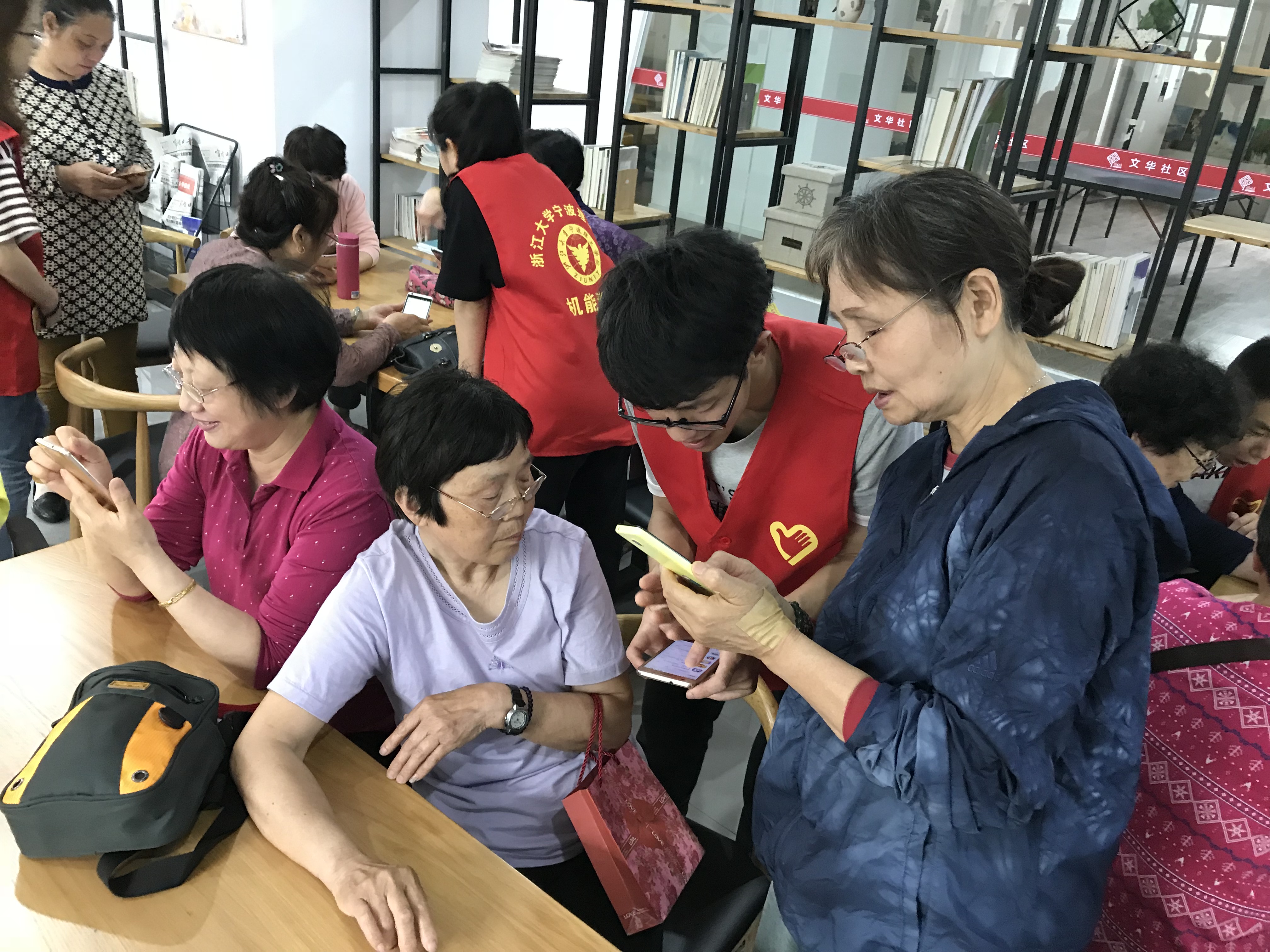 为了满足老年一代的民生需求,助推智慧城市建设。机能青协承接了鄞州区2018年度“智能手机操作技能普及工程”志愿服务工作。在近两个月的志愿者活动中,机能志愿者们辅助主讲师对老年人进行智能手机教学,完成了在五乡镇、白鹤街道、幸福苑社区、首南街道和福明街道的培训教学。通过此次活动,社区的爷爷奶奶更好地掌握了智能手机的基本操作,包括手机APP下载安装、微信的使用等等。