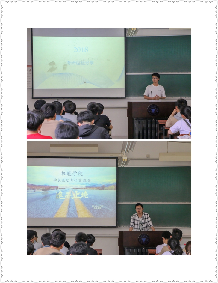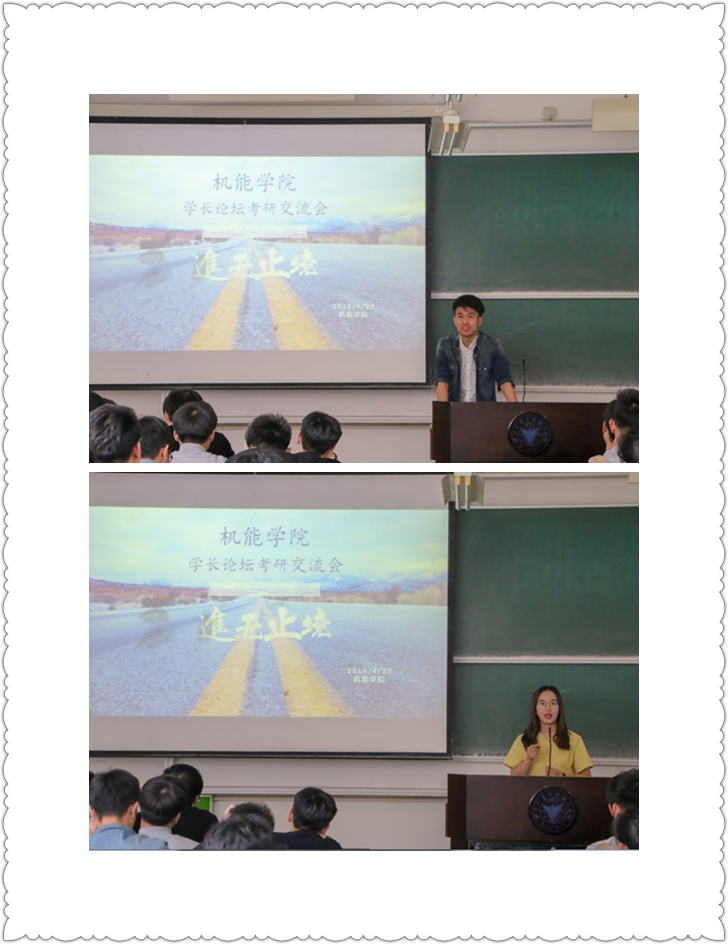 为鼓励学院学生积极考研,增强学院的考研氛围,机能学院于4月27日下午在NB108教室举行学长论坛考研交流会。本次交流会由辅导员王海波老师主持,邀请了机制142曾伟迪、机电141金智康、能源141刘庭崧和包装141蒋夏莹四位考研成功学长进行分享。参加交流会还有学院低年级有考研意向的同学。