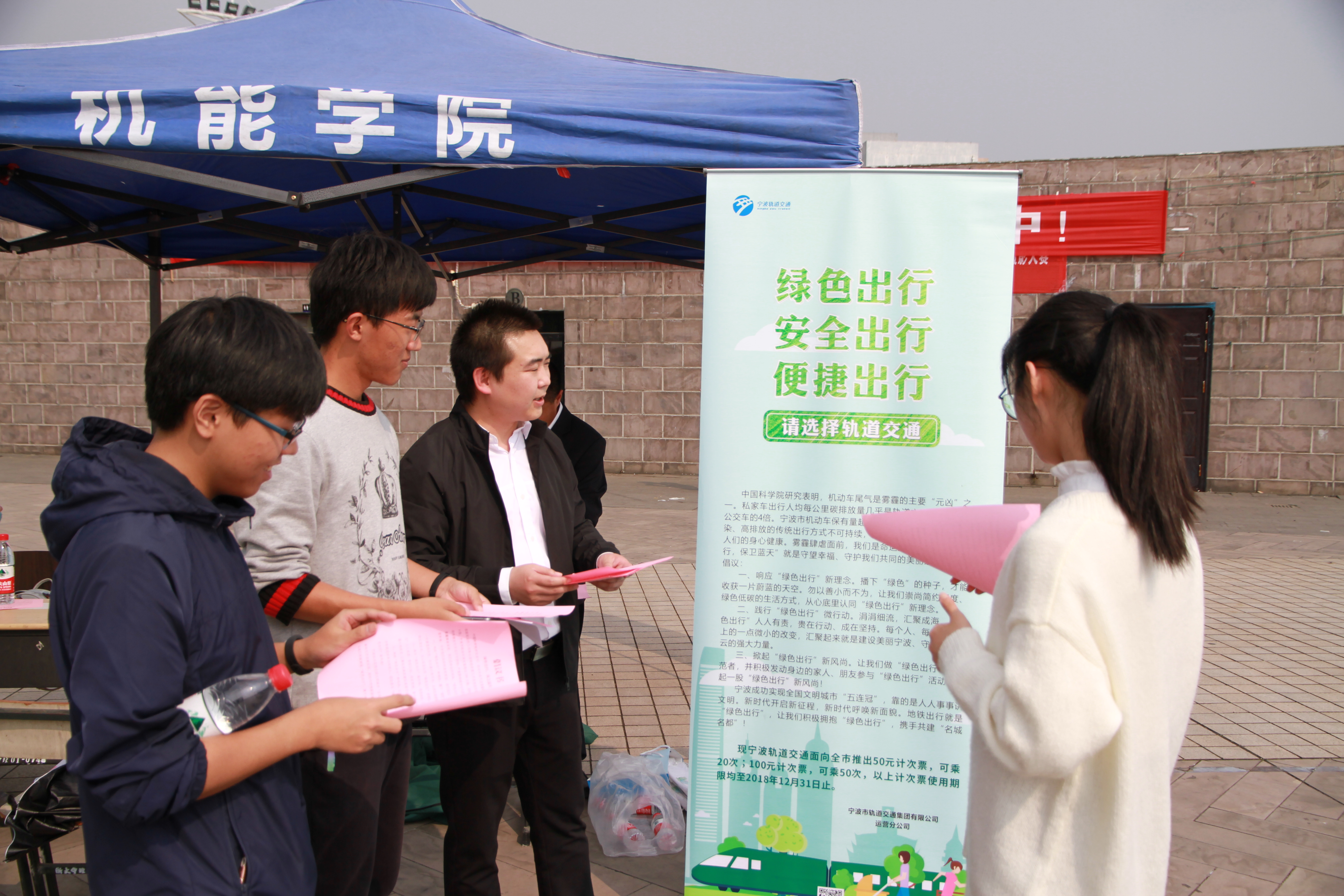 2018年4月25日下午13:30,机能学院团委与宁波市轨道交通集团联合组织了本次“绿色出行、安全出行、便捷出行”倡议活动,宁波市轨道交通集团也派专人前来就轨道交通出行的绿色性、便利性做了宣传。