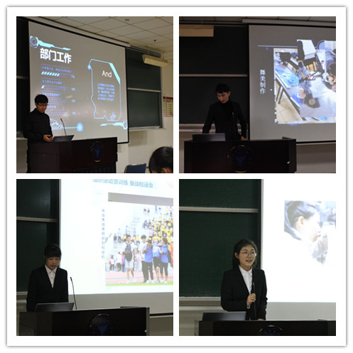 随后,学生会大会拉开帷幕。首先是学院学生会主席朱金杰同学和学生会主席助理沈唐骏同学分别代表学生会致词。他们对过去的工作进行了回顾,对辛勤工作的机能学生会成员表示感谢,并和大家分享了作为学生干部所学到的经验。最后主持队队长杨状状同学宣读了各部门成员对本部门的总结,其中包含了每个人对于部门的感谢、对部门其他成员想说的话、自我所得到的锻炼。那些饱含深情的话赢得了在座同学的热烈掌声,学生会大会也在大家对过往一年的美好回忆中圆满落下帷幕。