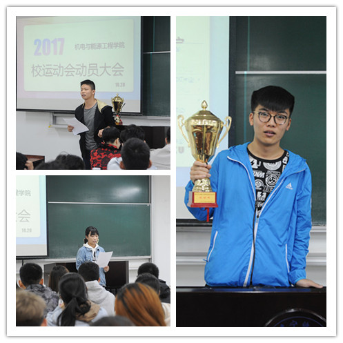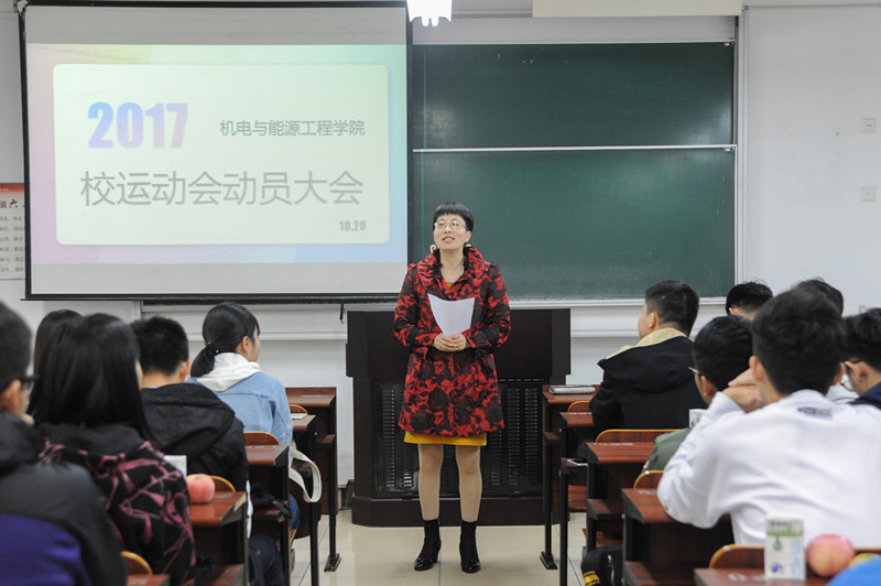 在第十六届校田径运动会即将来临之际,机能学院于10月20日12:30在NB215举行了校运动会动员大会。出席大会的有学院党总支书记吴春老师、学工办思政主管胡鹿鸣老师、团委书记仇芳老师、辅导员王海波老师以及学院主要学生干部、全体运动员,本次大会由学院学生会体育活动中心主任高观森同学主持。