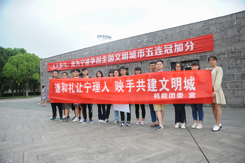 “为学校添彩,为宁波加分”,机能学子以文明带动文明,为宁波文明城市创建工作添砖加瓦。