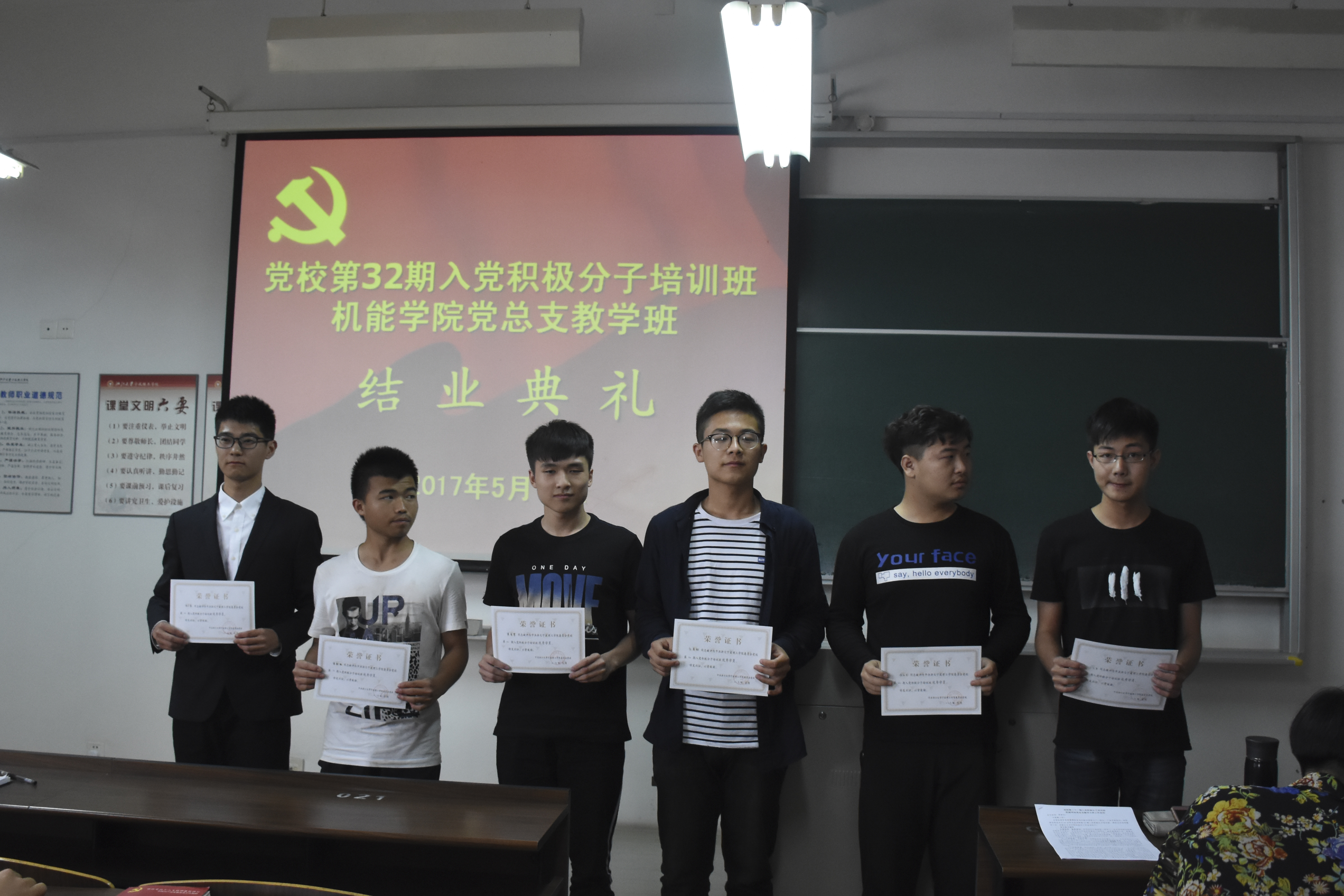 2017年5月15日,机能学院第32期入党积极分子培训班结业典礼于NB307如期举行。机能学院党总支书记吴春老师、思政主管胡鹿鸣老师及辅导员刘舒老师参加了典礼。典礼由辅导员王海波老师主持。