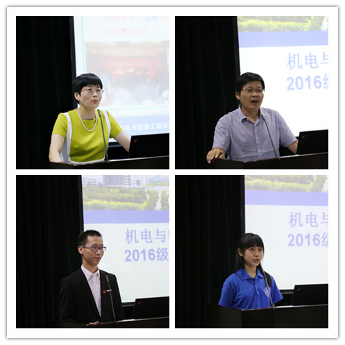 随后老生代表、学生会主席汪严超同学分享了他的学习经验,他鼓励学弟学妹不忘初心,坚持最初的梦想,不断前行。新生代表机电162班姚含笑同学表达了对新的学习生涯的憧憬,并表示“理工是一个实现梦想的地方”,誓在这里全力拼搏。