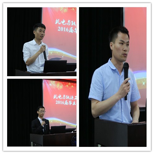 会上,毕业生代表高正杰同学、在校生代表汪严超同学、教师代表徐锋老师分别上台发言。高正杰同学讲述了对校园生活的依依不舍以及对母校的祝愿;汪严超同学表达了对毕业生学长学姐们的祝福;徐锋老师通过分享自己毕业后的经历,为毕业生指点迷津。老师同学们依依不舍真挚情感的发言赢得了阵阵的掌声。