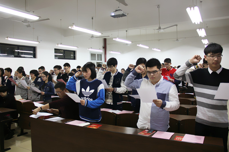 典礼伊始,在庄严的国歌声中,全体肃然起立,每位学员的脸上都写满了向党组织靠拢的决心。胡老师首先宣读了本次培训班的教学安排,紧接着仇老师重点强调了课堂纪律和请假制度。党课是入党积极分子的必修课,每一位未来的党员都必须端正学习态度,秉着一心向党,为人民服务的态度,锤炼自我、修养身心。之后包装132班秦帅同学作为党校学员代表发言,并带领全体学员郑重的宣读并签署党校学习承诺书。