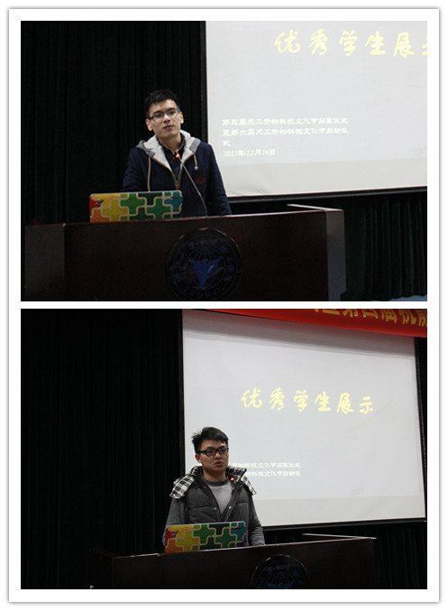 简短的开幕式后是优秀学生代表与大家交流经验。校“十佳学生”包装131班张成同学提供了自己的学习方法与大家共享,告诫学弟学妹要提早规划自己的大学生涯并对自己的时间进行有效管理,通过参加课外活动锻炼自己的能力。国家奖学金获得者机制124班沈超杰同学则向大家讲述了他在科研方面的经验,介绍做报告的流程,鼓励同学们多认识专业的老师,积累师资力量。两位学长的讲话使新生们对未来规划有了更清晰的认识,收获大家衷心的掌声。
