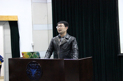胡鹿鸣老师为开幕式致词,他谈到了2015年的“12.13”南京大屠杀国家公祭日、“12.9”纪念一二九运动80周年活动、“9.5”纪念中国人民抗日战争暨世界反法西斯战争胜利70周年的盛大阅兵式等事件,以及“大众创业,万众创新”、SDR等一系列时代热词,告诉青年同学2015年注定是不平凡的一年,希望同学们能够更多地关注时政,与祖国同命运,与祖国共成长!胡老师还总结了机能学子在第五届天工开物科技文化节中取得的众多成绩,同时希望广大机能青年在大学中一定要积极参加各类活动,不断锻炼自己、提升自己、成长自己。接着,由学生代表施鑫栋和李啸华同学进行第五届天工开物科技文化节主要活动的展示和总结,丰富多次的活动和眼花缭乱的奖项深深吸引了在座的大一新生们。