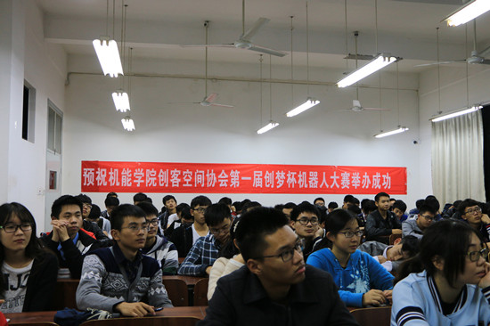 开幕式伊始,首先由机能学院创客空间协会会长陈杰同学详细介绍了本次本次比赛的相关内容,本次大赛以“关爱老人,服务社会”为主题,是为了应对未来二三十年人口老龄化现象越来越严重、越来越多的留守老人无人照顾的问题,希望同学们发挥自己的创意和专业特长,设计出能够帮助老年人生活起居的机器人,同学们均摩拳擦掌,希望用创意、用行动,为老人们带来寒冬中的温暖。随后,华顺明老师为此次比赛做了赛前说明,并且分享了一下自己的想法和创意,让在座的同学们受益匪浅。在同学们的阵阵掌声中,浙江大学宁波理工首届“创梦杯”机器人创意大赛正式拉开帷幕。