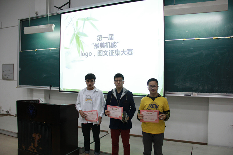 经过激烈的竞争,logo、摄影和征文三项比赛分别由能源152张喆颖、机制153王宏超和包装131唐春晓三位同学摘得桂冠,台下雷鸣般的掌声为之喝彩,表达了对机能才子的认可和支持。