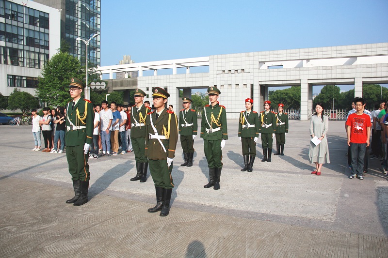 今年是中国人民抗日战争暨世界反法西斯战争胜利70周年,为祭奠在抗战中牺牲的将士,更好地引导同学们对抗战精神的深入了解,机能学院于6月1日清晨在学校西大门举行了升国旗仪式。机能学院团委负责老师朱彬娴,机能学院团学社各部门部长及2014级全体同学参加了本次升旗仪式。 本次升旗仪式由机能学院团委黄志强同学主持。