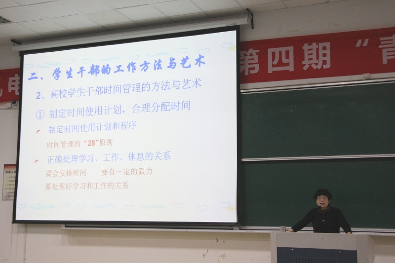 团校开学典礼结束。机能学院党总支书记吴春老师为我们上了团校的第一课。她以一名老学生干部和老团干的身份,主要就学生干部应具有的素质和能力展开了深入的剖析。从思想素质、业务素质、身心素质,到应变能力、人际关系处理能力、时间安排能力等等与同学们进行了探讨。她以鲜活的事例,深入浅出的讲解,让同学们获益匪浅。同时,吴春老师也希望同学们加大身体素质的锻炼及社会实践的力度,继续加强学生组织的制度建设、纪律要求和作风建设,在工作中奉献、在奉献中服务、在服务中成长和收获,成为一名优秀的学生干部。