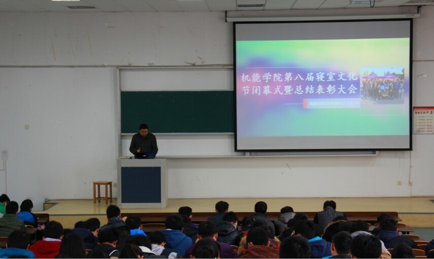 机能学院第八届寝室文化节闭幕式暨总结表彰大会于12月19日下午12点30分在SB102教室召开。出席本次会议的有学工办辅导员王海波老师、党员、团学社骨干以及各班班长、寝室长和生活委员。