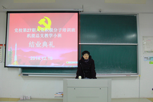 经过一个多月的培训,党校第二十七期入党积极分子培训班机能学院党总支教学小班结业典礼,于12月10日下午五点在NB305顺利举行。出席本次结业典礼的有,机能党总支书记吴春老师、思政主管胡鹿鸣老师、党校班导师朱彬娴老师以及本期入党积极分子培训班全体学员。典礼由党校班导师朱彬娴老师主持。