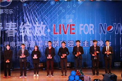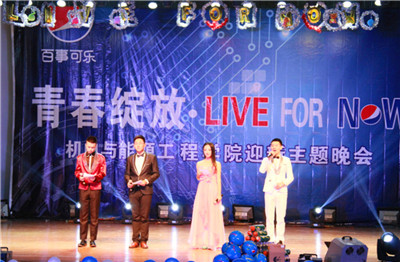 2014年11月9日晚5点半,由浙江大学宁波理工学院机电与能源工程学院主办、百事可乐有限公司协办的主题为“青春绽放,live for now” 的迎新晚会暨第九届体育盛典在可珍讲堂举行。出席本次晚会的嘉宾有党总支书记吴春老师,学工办各位辅导员老师、新生班班导师以及杭州百事可乐饮料有限公司专程领导来到现场观看。
