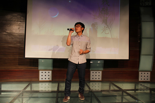 6点30分,十佳歌手比赛正式开始。机制142班的杨展鹏同学以一首《残酷月光》为本次大赛开场,他的深情演唱赢得了现场评委以及观众的热烈掌声,为本次比赛打响了头彩。