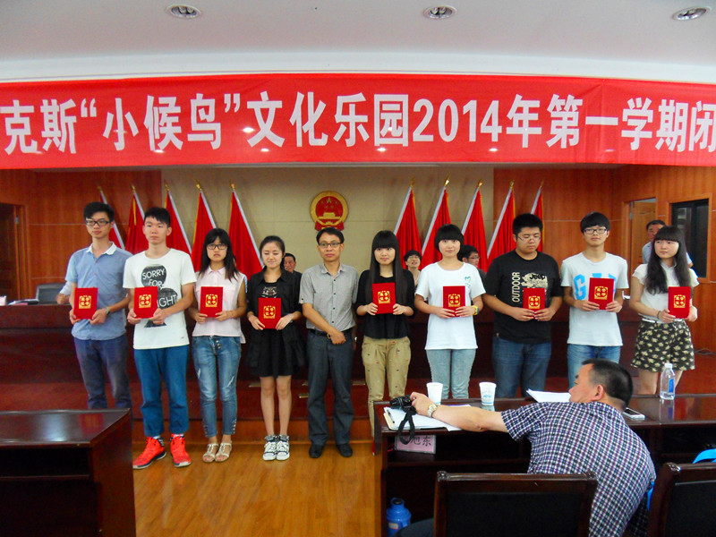 6月21日上午8点30分,浙江大学宁波理工学院大学生社会实践基地授牌仪式暨龙观乡奥克斯“小候鸟”文化乐园2014年第一学期闭园式在龙观乡政府会议室顺利举行。龙观乡关工委顾问团团长郑伦祥、乡党委副书记黎炜华、关工委常务副主任徐忠国和退休乡干部等出席仪式,机电与能源工程学院党总书记吴春、思政主管胡鹿鸣、团委书记邬旭东和学校大学生志愿者们参加仪式。