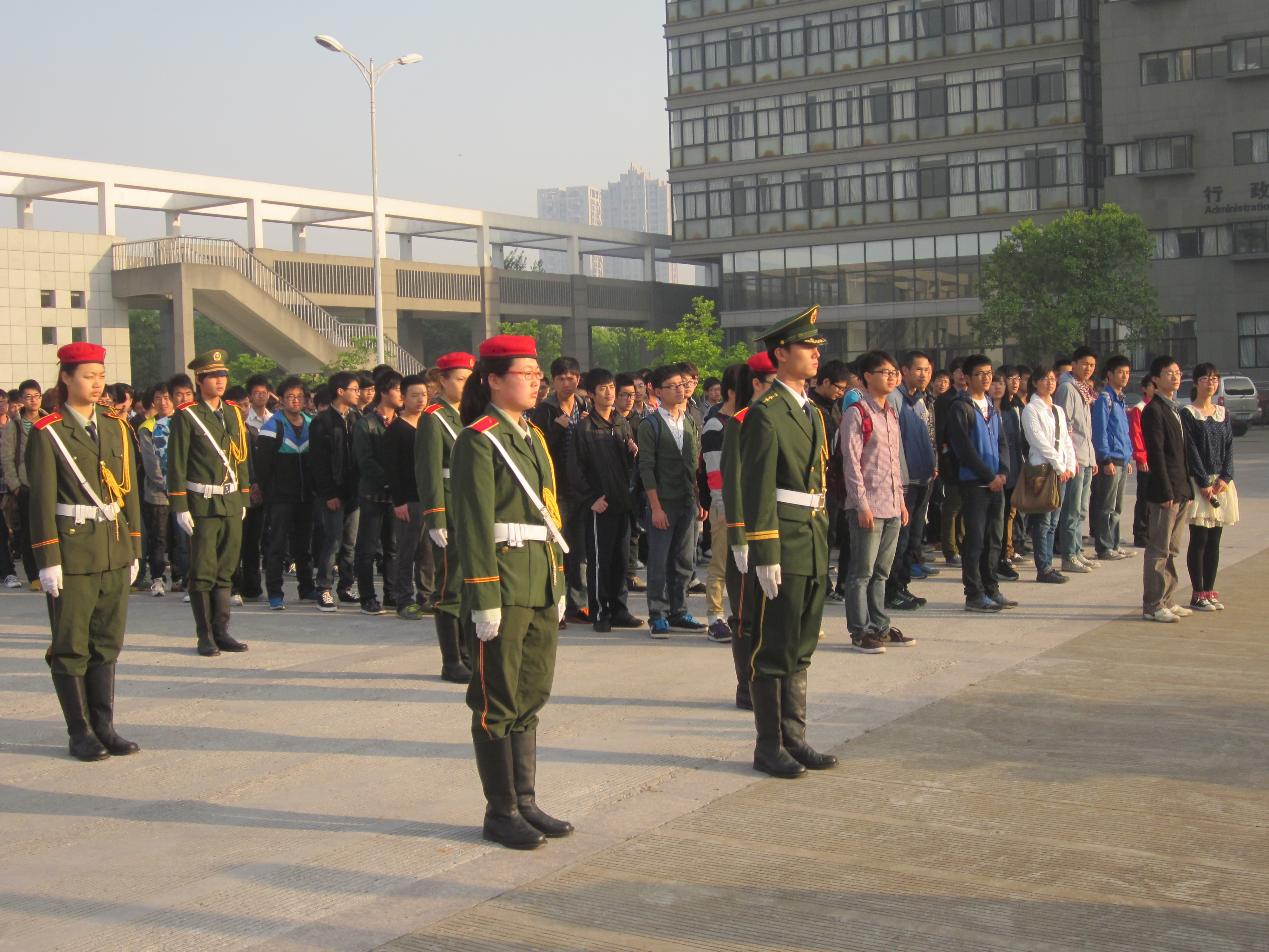4月15日清晨,机能学院在理工西门广场举行了升国旗仪式。