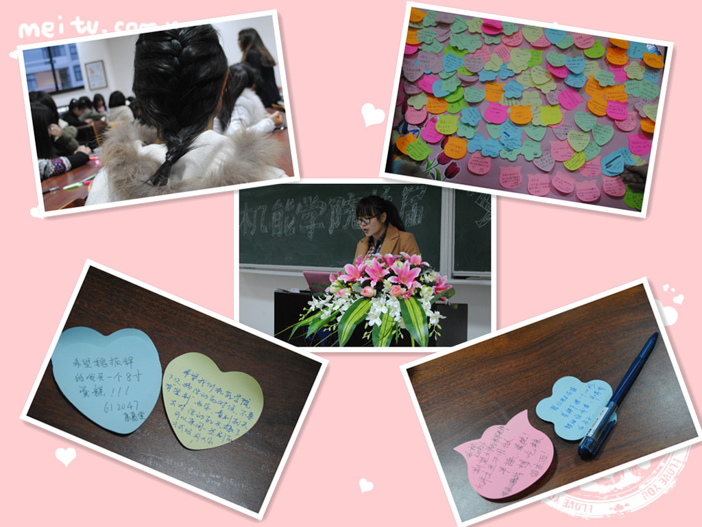 “星语心愿”活动将开幕式推向了高潮。在座女生争先恐后、带着憧憬和祈祷的将自己的心愿写在纸上,希望有男生们来实现这些女生节愿望。相信每位填写愿望的女生,都能在微冷的寒风中收到这一份温暖。最后,机能学院全体女生还参加了由学校心理协会举办的“女生情感与心理呵护”心理讲座,讲座对疏导女生敏感心理、情感困惑起到了很重要的作用。