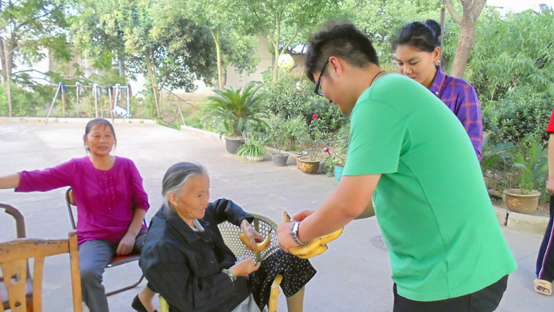 下午2点服务队的志愿者们抵达目的地,他们的到来使敬老院充满了温暖之情,服务活动在愉快的氛围中拉开了帷幕。按照事先分工,志愿者们分小组到老人的居所派发中秋礼物,同时也耐心地与老人们交谈,倾听老人们的心里话。通过交谈,志愿者们了解到大多数的老人与子女见面机会不多,中秋佳节即将来临,这使老人们期待与家人共享天伦之乐的心情更为迫切。对于志愿者们的关爱,老人们用慈祥的笑容给予了回报。此次活动时间虽然短暂,但让志愿者们懂得了老人需要的不是物质,而是关怀,哪怕是一声问候,一个拥抱,一次倾听。